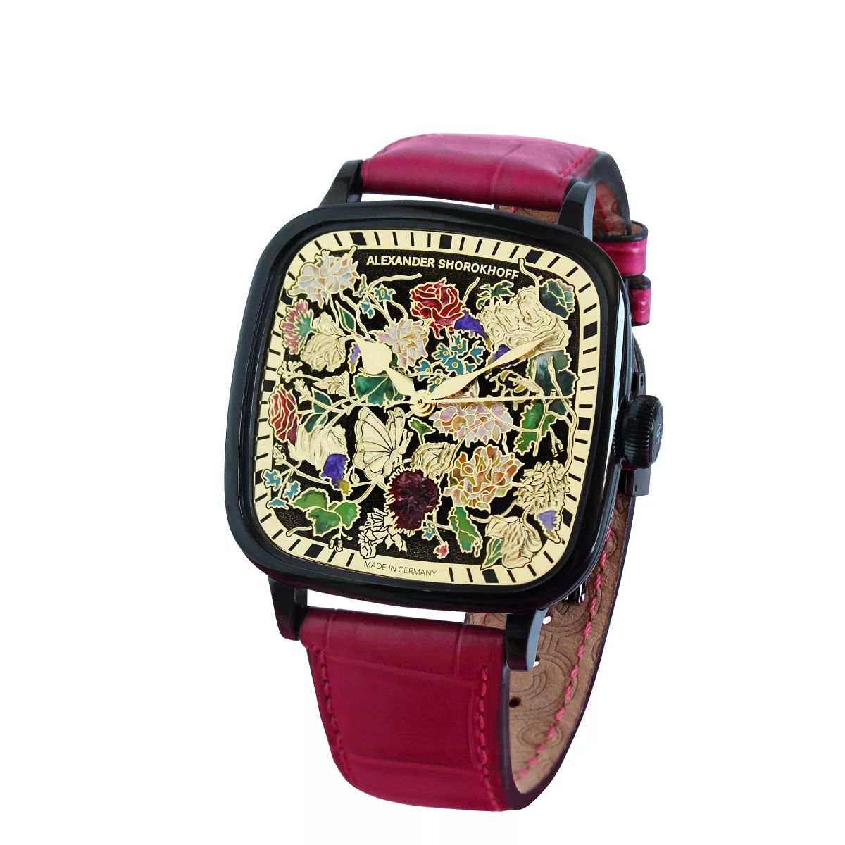 The “Bella & Alla” is undoubtedly a true masterpiece. The intricate floral pattern was first stamped and etched with the highest precision. Meticulous hand engravings then brought every petal to life, enhancing the design’s remarkable authenticity. Only after this careful craftsmanship was the dial refined with luxurious yellow gold. Finally, enamel was applied by hand, giving each individual petal an unparalleled depth and vibrancy. With this model, Alexander Shorokhoff once again demonstrates the brand’s ability to create extraordinary timepieces—pushing the boundaries of artisanal craftsmanship. Limited to just 13 pieces.