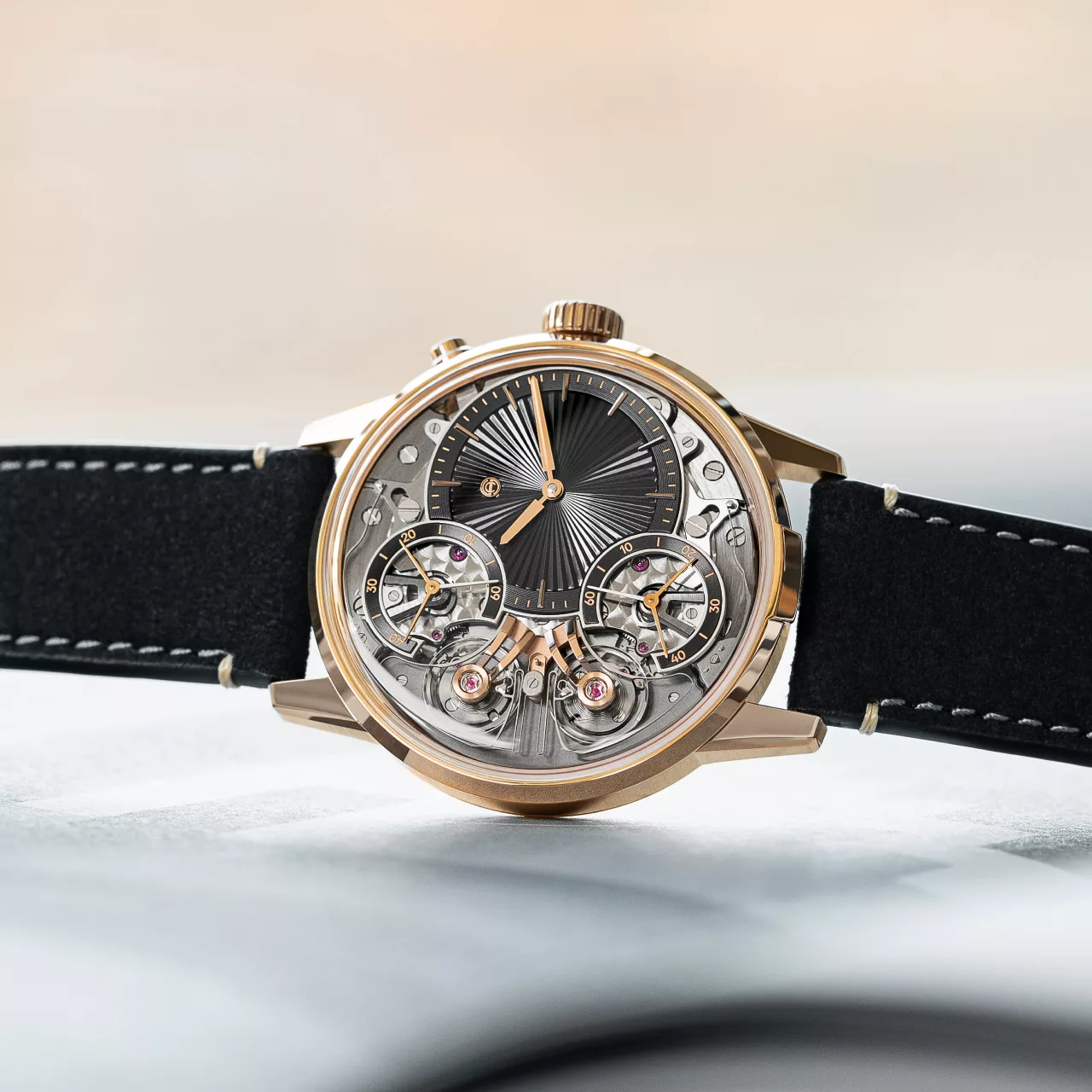 Visible through the sapphire case back, the movement is a showcase of meticulous hand-finishing. Hand-bevelled bridges, polished and matte surfaces, perlage, circular graining, and black-polished screws all attest to the brand’s unwavering dedication to excellence. Each watch is assembled twice, ensuring both mechanical precision and finishing integrity. Limited to just 15 pieces worldwide, this edition represents a new golden era for Armin Strom’s most iconic timepiece.