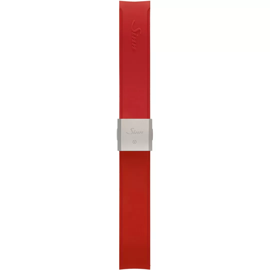 Watch band for Sinn Silicone strap, red, integrated tegimented steel butterfly clasp, 20mm