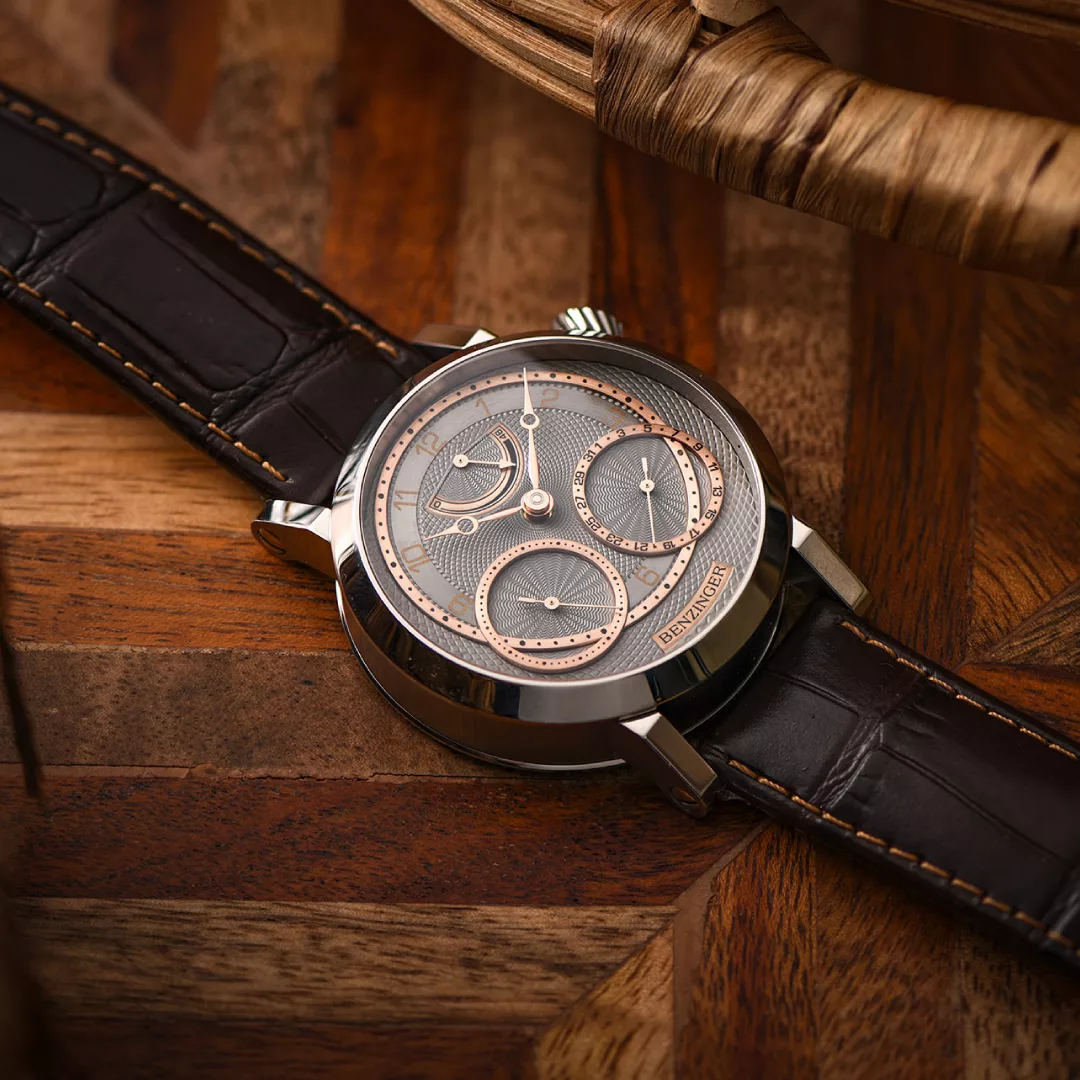 Engraving is as old as mankind itself. People used cutting tools at all times to decorate jewellery and utensils. The engraving art in Europe in the fifteenth and sixteenth centuries reached its climax when armour and weapons were artfully engraved. In the sixteenth century, Albrecht Dürer brought this work to a new heyday when, using the same tools as Jochen Benzinger uses in his studio today, he cut the copper-printing blocks for his famous prints. Nowadays there are very few specialists who know the techniques of this craft. Hand-engraving in horology is a highly valued attribute on any timepiece. Benzinger watches feature this finish with flourish and skill.