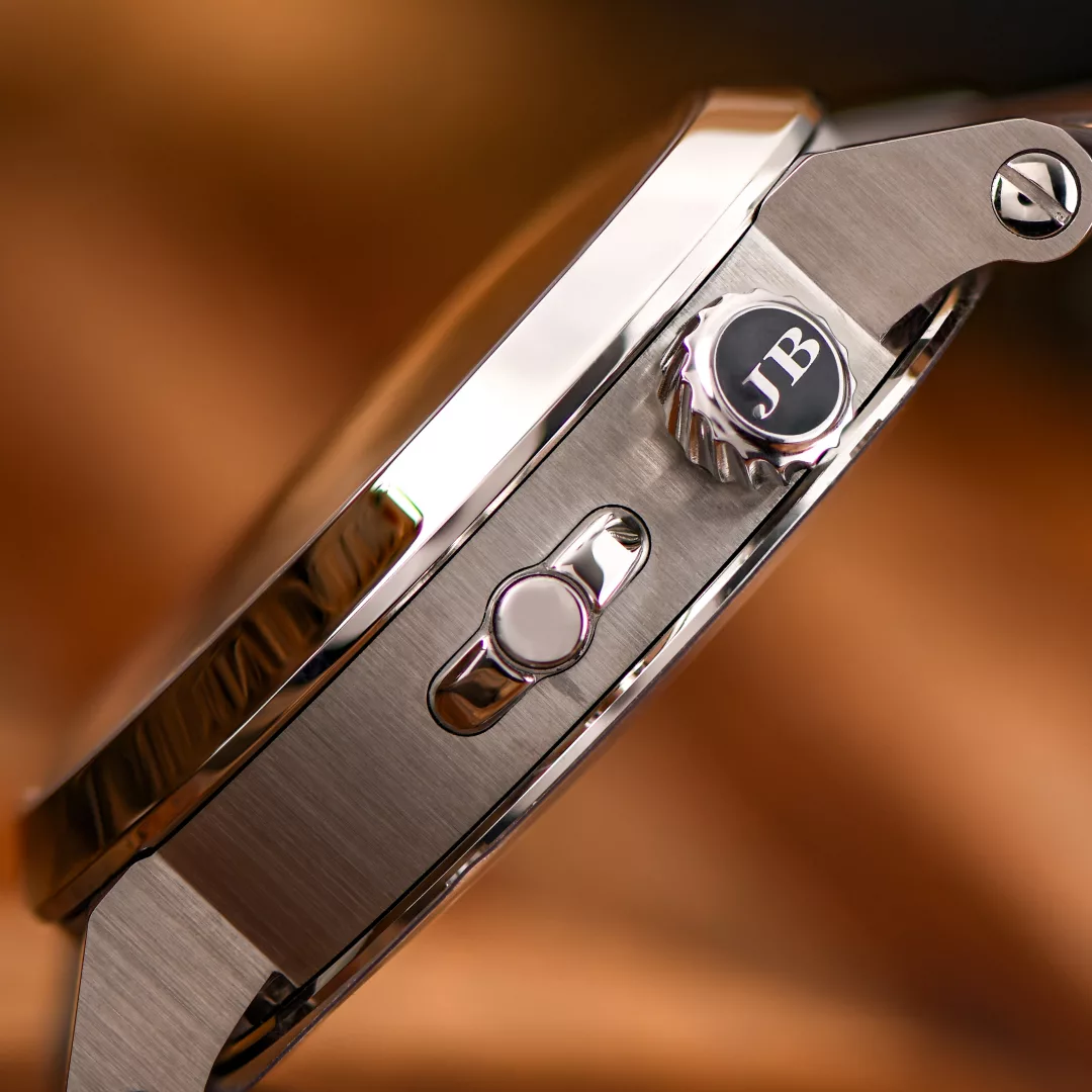 - Crown positioned at 2 o’clock with optional ceramic inlay, matching the case back