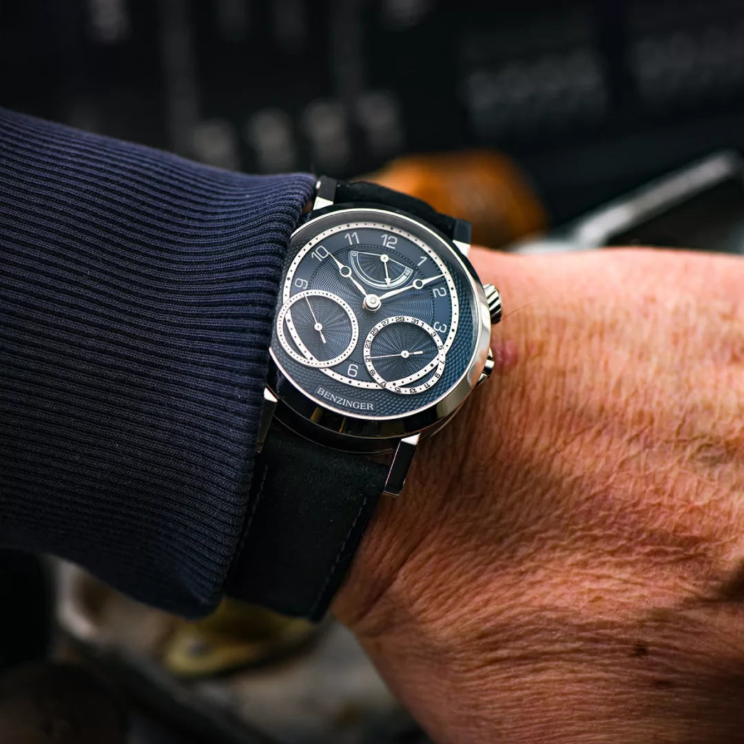 The Benzinger GAP 2 Midnight Blue, with its rhodium-plated chapter rings and flawless attention to detail, brings a fresh and distinctive presence to any collection