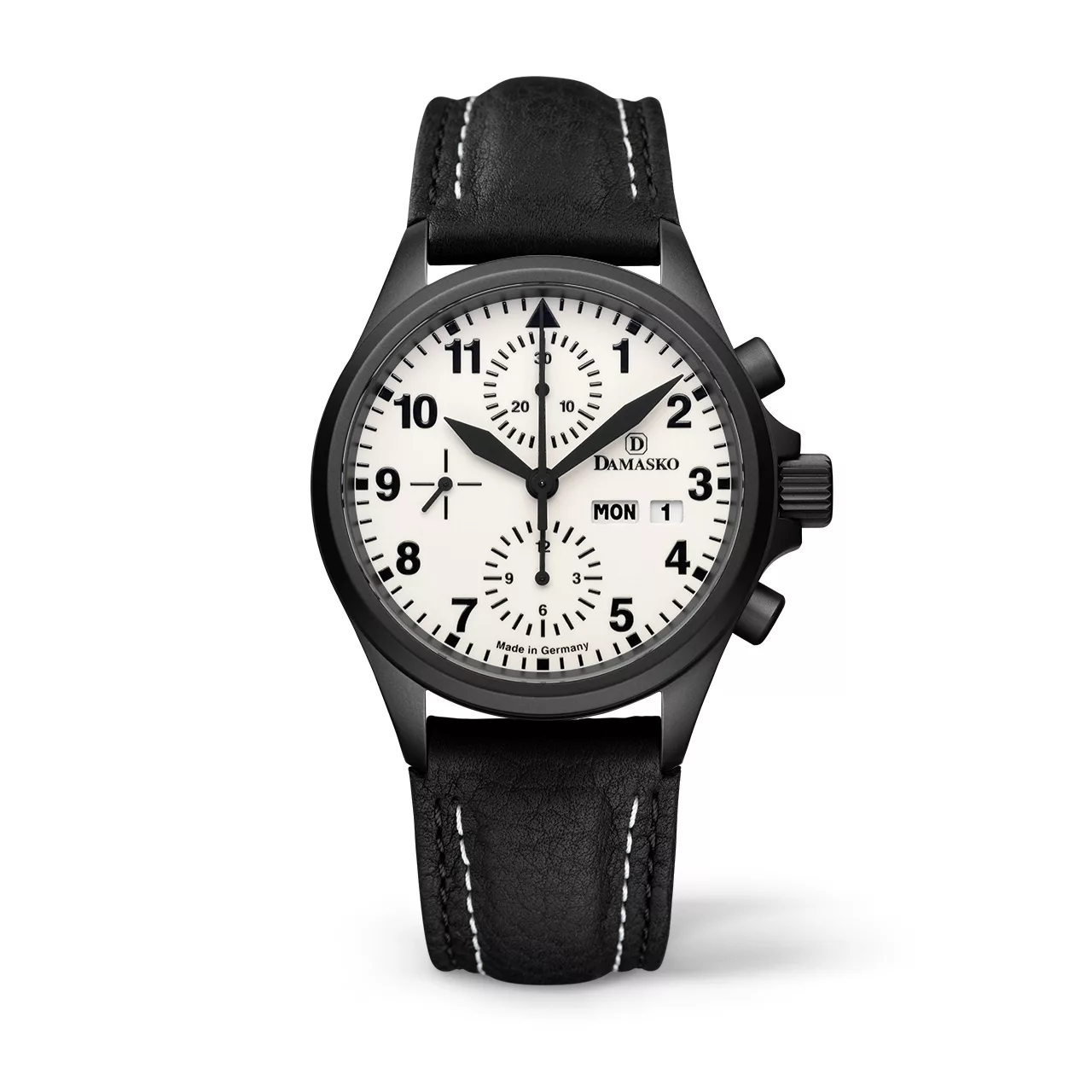 The Damasko DC57 Black fuses military-grade materials with full-lume visibility and the trusted architecture of the Valjoux 7750 movement. This 40mm chronograph is crafted for extreme durability and night-time clarity, combining German engineering with a stealth matte black aesthetic.