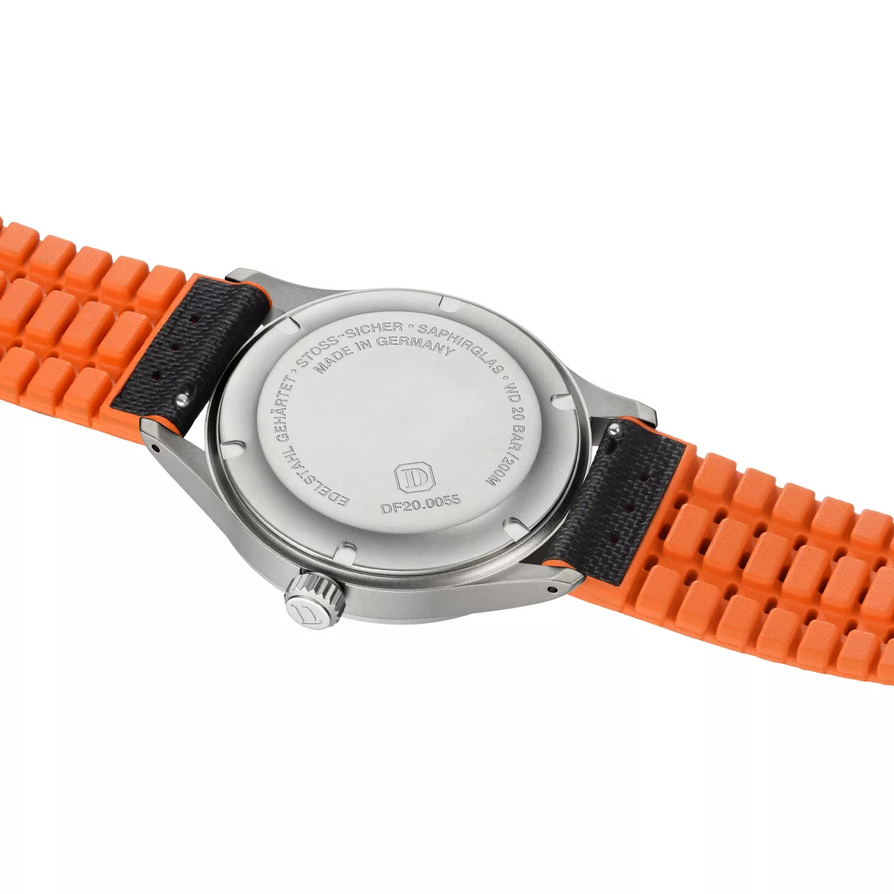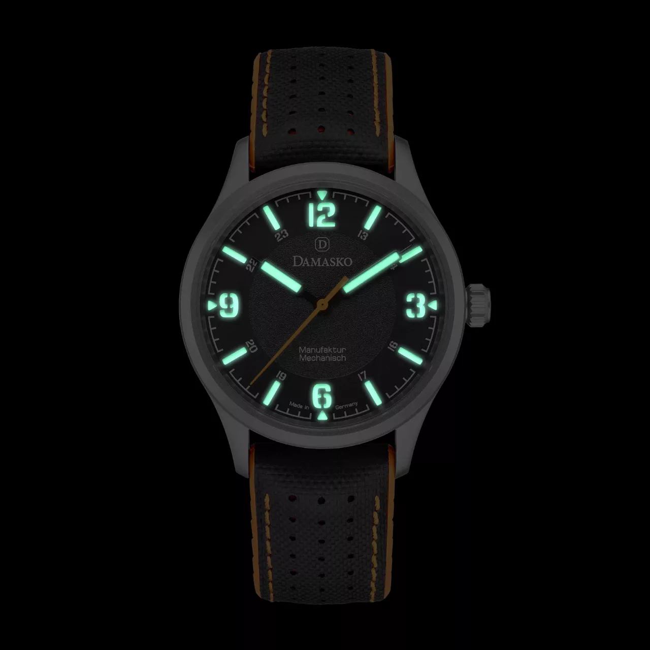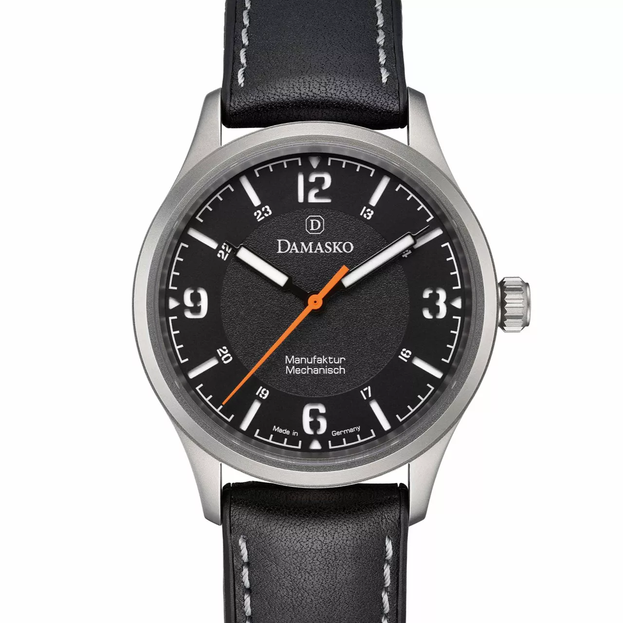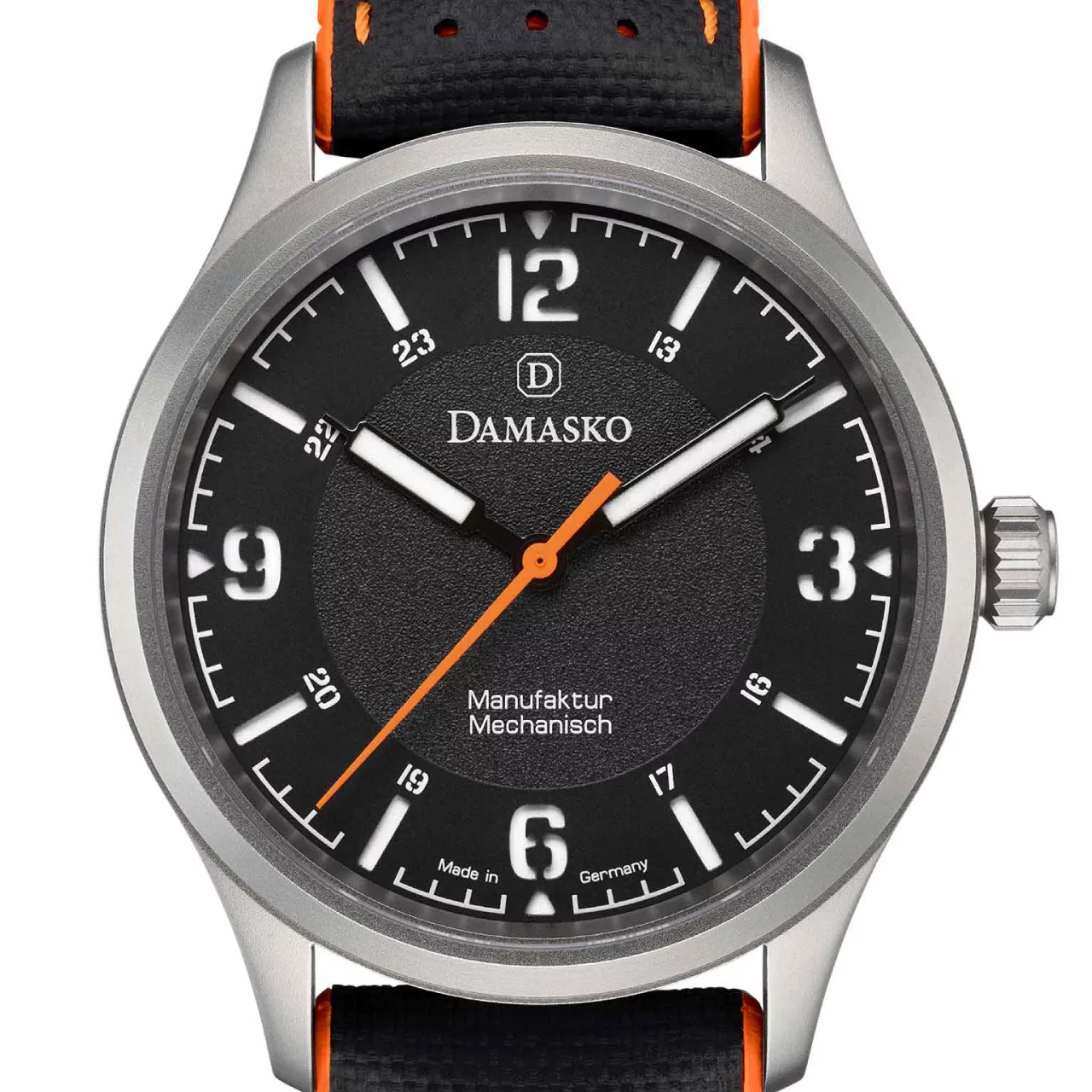 “Easy to read, robust and precise” – these are the attributes of the new DamaskoDF20 field watch. Based on the design of earlier “field watches” for the military, Damasko have reinterpreted the dial. The case parts are surface-hardened and bead-blasted. The dial is perforated and backlit by a super luminova dial underneath. The hour and minute hands are coated with Superluminova in Old Radium GL X1 quality. The reliable A26-1 works with Silicone Escape wheel inside