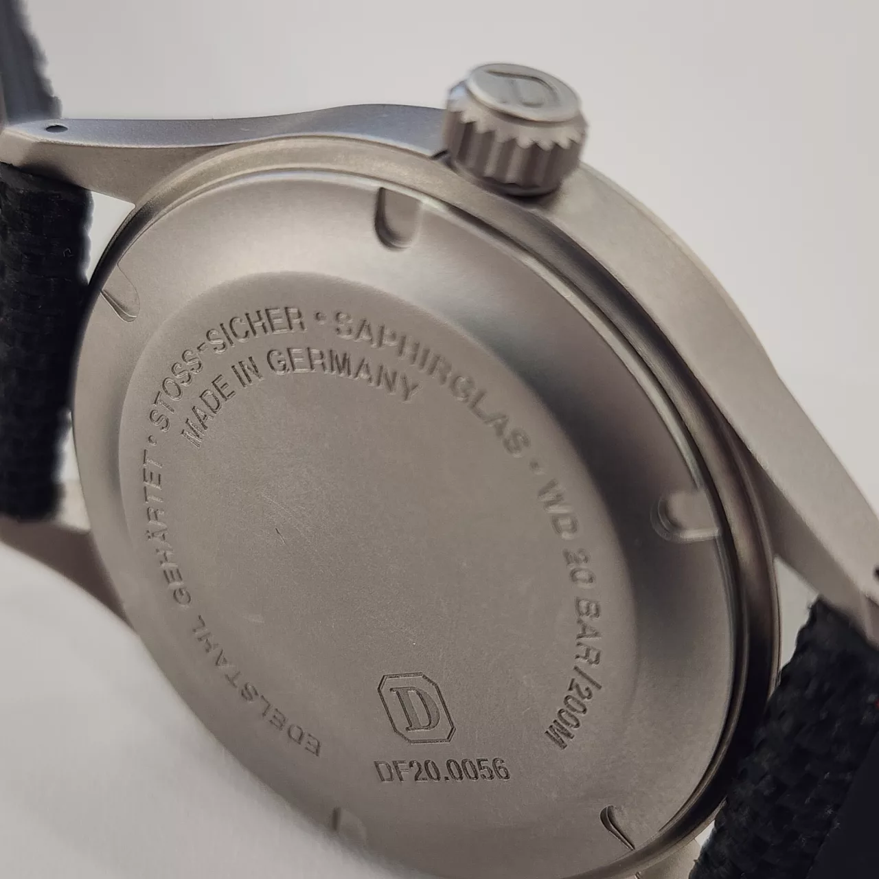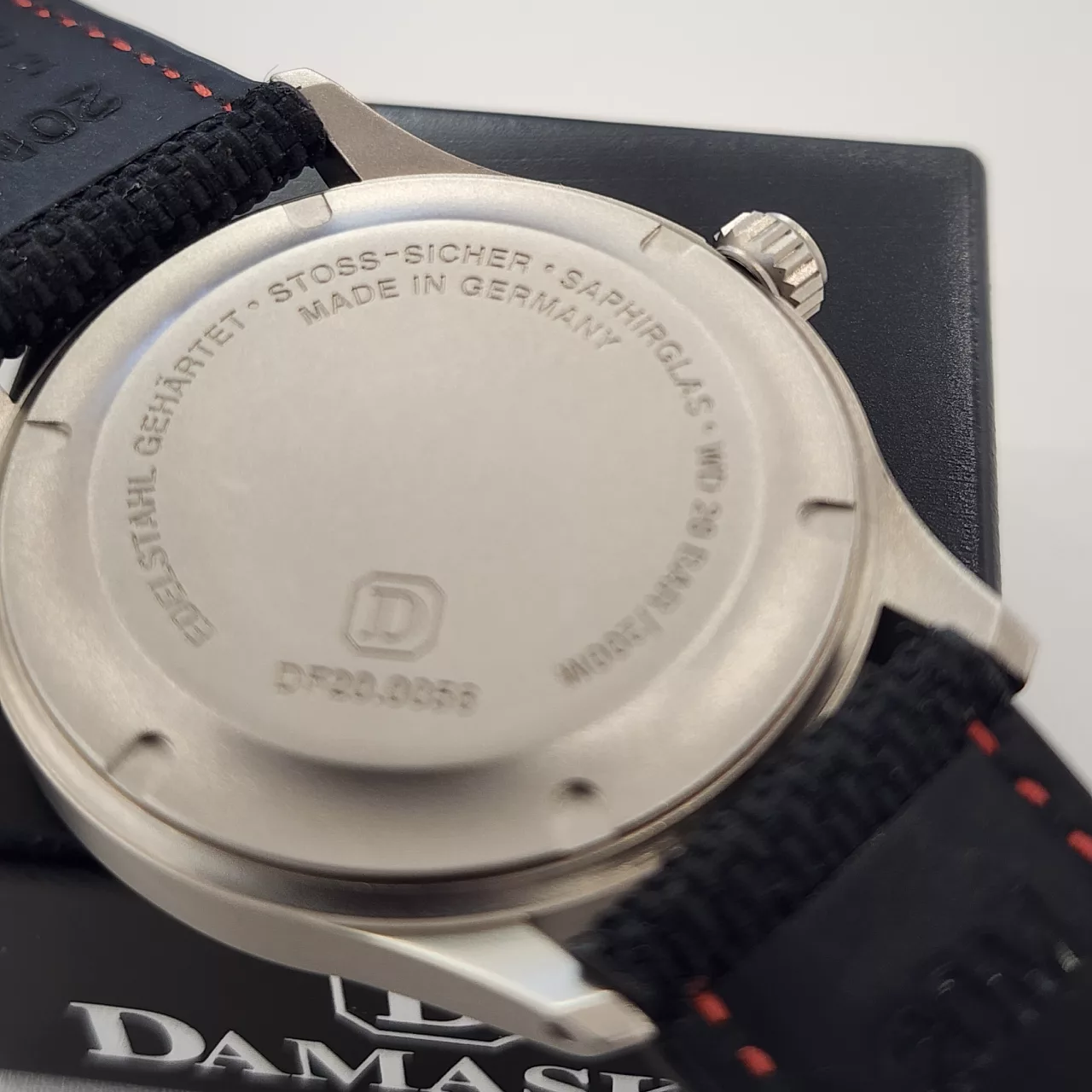 - Hardened case, back, crown & pushers made from German submarine steel, surface hardened and bead-blasted