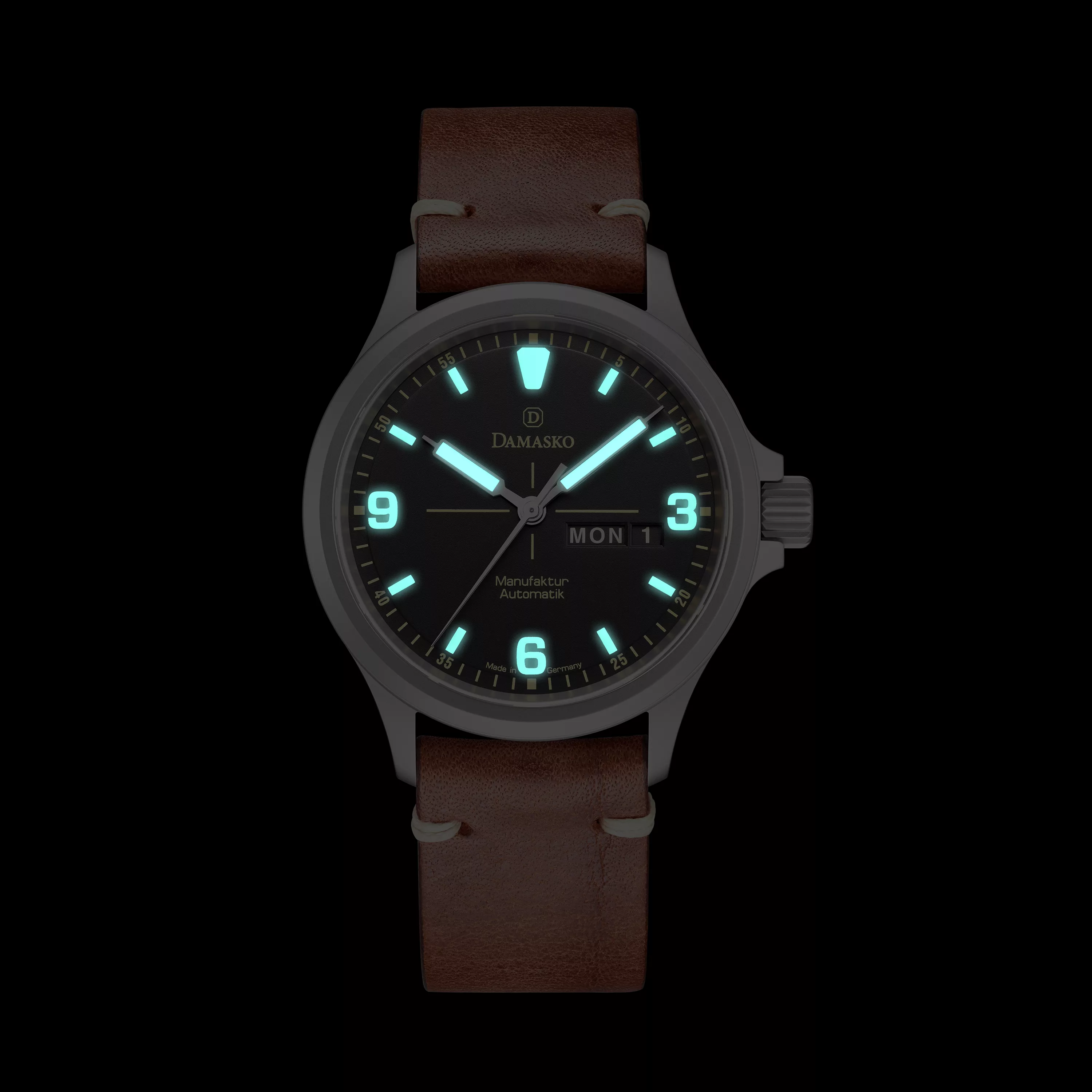 Its robust 40 mm case is crafted entirely from Damasko’s patented ice-hardened stainless steel, delivering a surface hardness of 64 HRC (800 Vickers) for remarkable scratch and corrosion resistance. Each component, including the screw-down crown and case back, is engineered for durability and enhanced with the brand’s proprietary triple-sealed DAMASKO system for water resistance to 100 metres. Viton gaskets ensure superior sealing over time, while the sapphire crystal is treated with anti-reflective coating on both sides for optimal legibility in all lighting conditions.