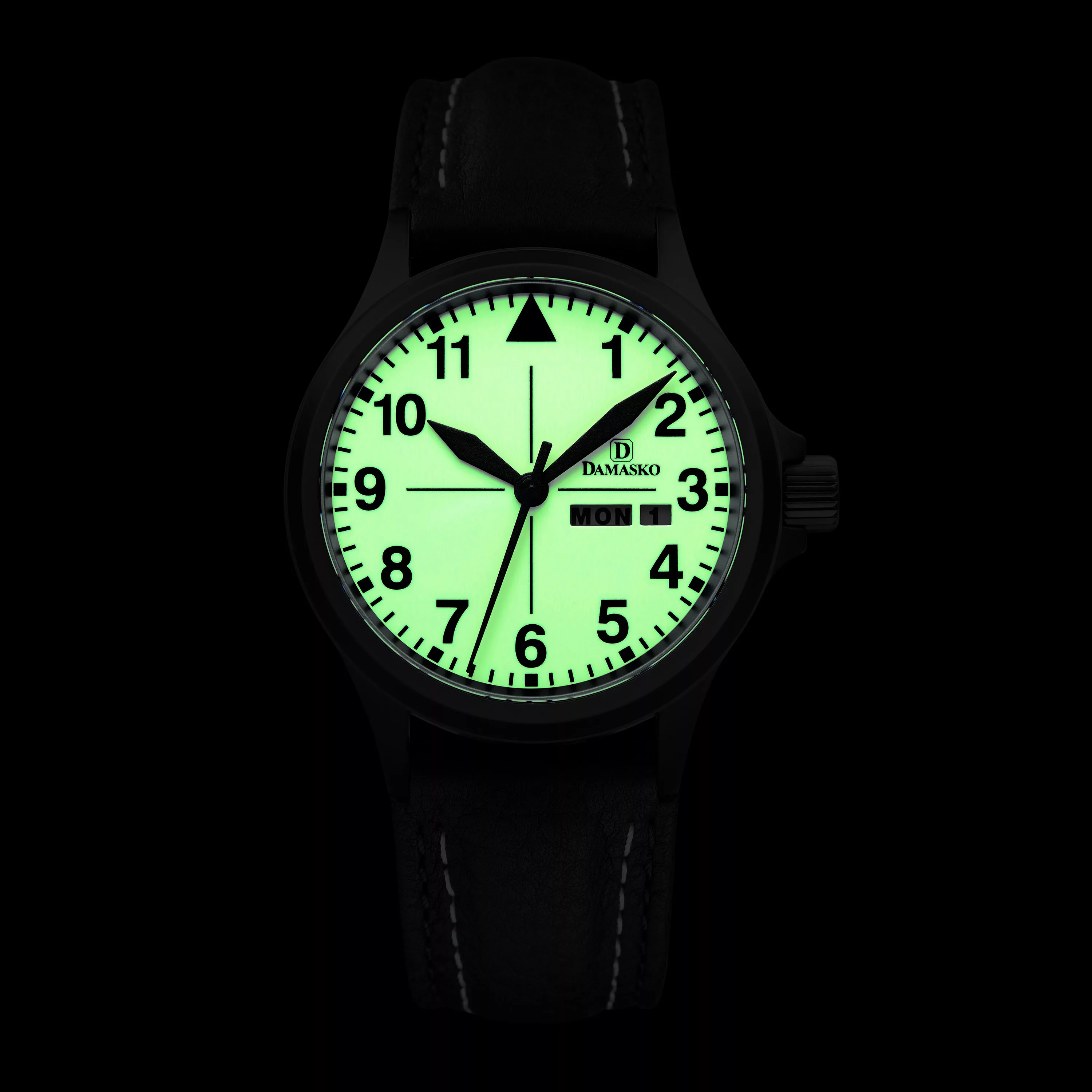 The Damasko DK37 Black brings together tool-watch functionality, legibility, and innovation in a sleek stealth aesthetic. Its dial is fully coated with Luminova C1 X1 luminous compound, ensuring consistent readability in low-light conditions. Black-painted hour markers, sword-style hands, and a prominent triangle at 12 o’clock deliver high contrast during the day and a sharp silhouette at night. This reversed lume design offers both visual impact and practical utility, making it a unique addition to the DK range.