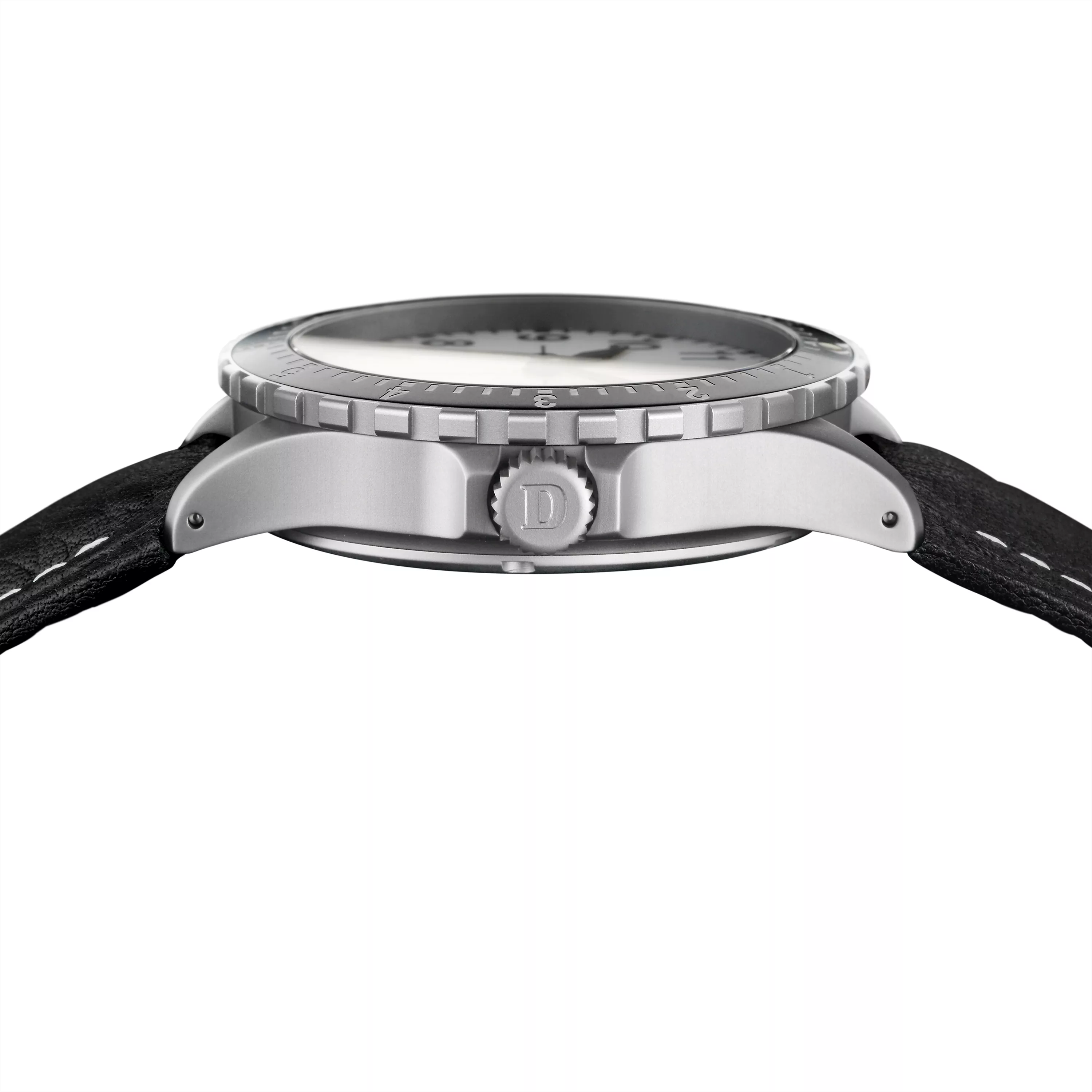 Included is a premium leather strap with black and white double stitching and bead-blasted buckle. The DK47 is a high-performance field watch wrapped in an understated, professional aesthetic—ready for any situation.