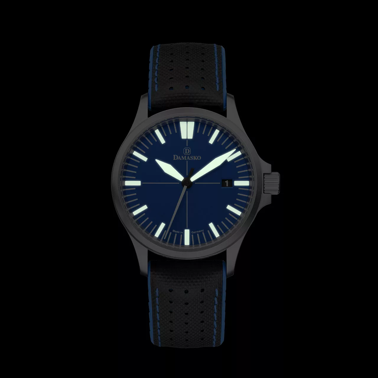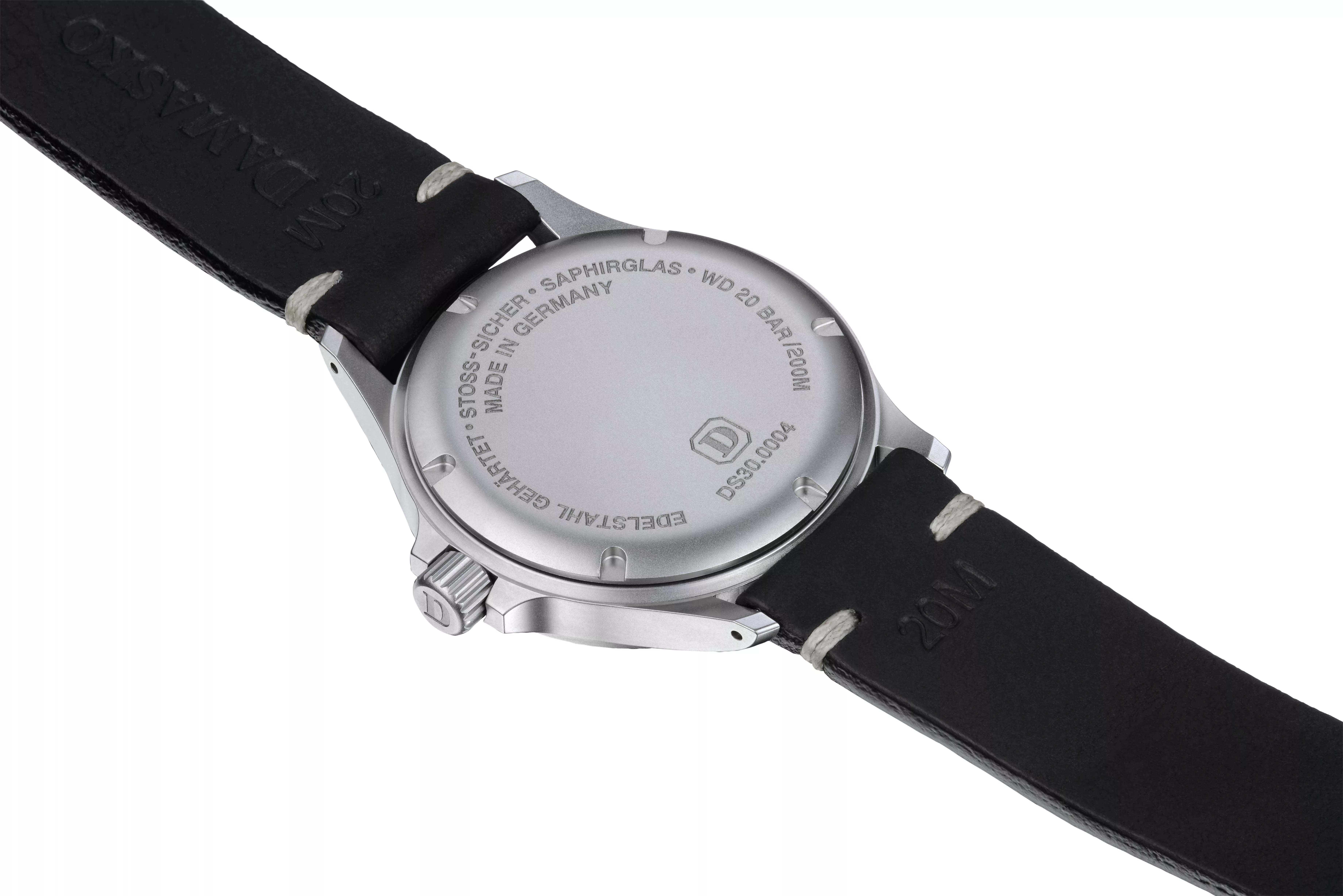 A flat sapphire crystal with double-sided anti-reflective treatment ensures uninterrupted readability in all lighting conditions. Inside, the tried-and-tested Swiss ETA 2824-2 automatic movement delivers reliable performance with a 38-hour power reserve. It is specially regulated by Damasko for precision and is shockproof to DIN 8308 standards.