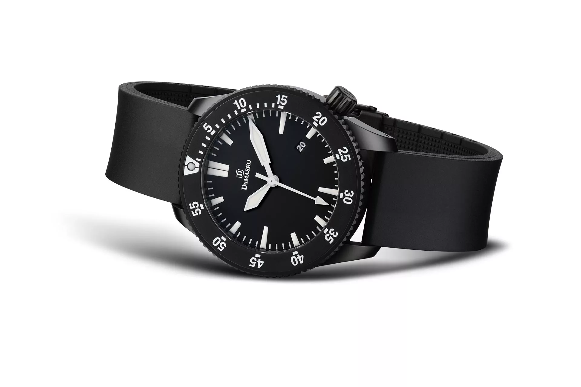 The Damasko DSub50 is a professional-grade dive watch engineered to meet the toughest underwater challenges. Built from austenitic German submarine steel, this robust timepiece offers outstanding corrosion resistance and complete anti-magnetic properties, even under constant seawater immersion. Its bead-blasted case, treated with Damasko’s proprietary black DAMEST coating, delivers superior scratch resistance and a striking, stealthy aesthetic.