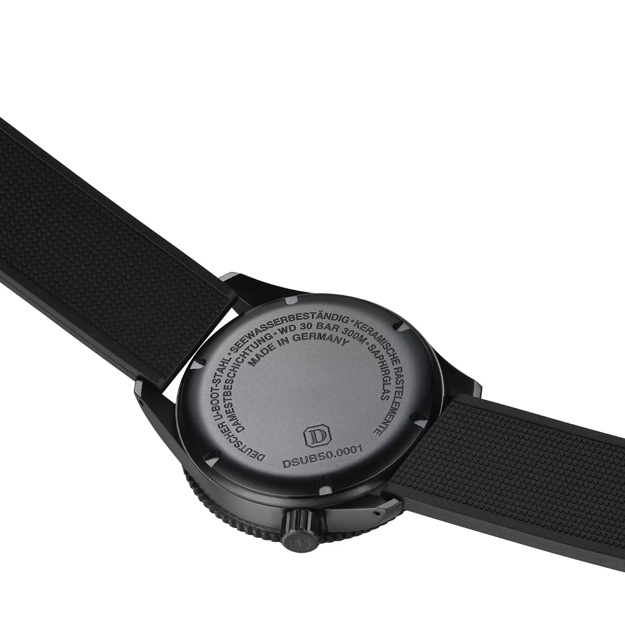 - Case: German submarine steel, hardened, bead-blasted with black DAMEST coating; screw-down case back and crown with crown protection