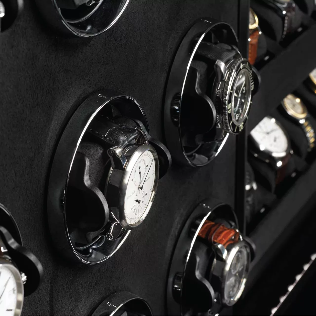 Winders: 60 precision watch winders, individually programmable via WLAN, 12 o’clock position