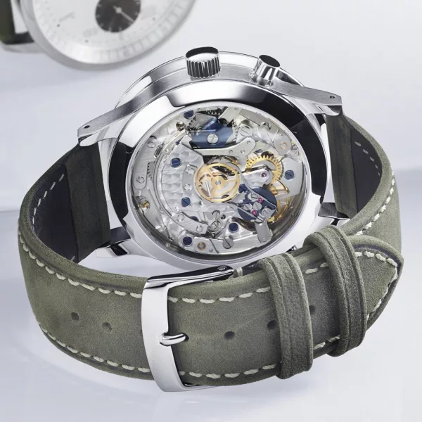 For humans, time is an incredibly scarce and important resource. Every second counts. And what complication could pay homage to this realisation in a more appropriate way than a double chrono. Especially when this double chrono was created by hand. Because no matter whether our timepieces are a little bit bigger or smaller, our manufactory remains small and beautiful. Furthermore, we rely exclusively on manual work. This applies in a special way to the movement. It goes without saying that it is 100 percent inhouse effort and equipped with the finest finish. And on top of that, the Doppel38 is truly modest – the buyer gets a beautiful and high-quality watch at a fair price. Yes, we are convinced: The Doppel38 is certainly a split chronograph with an outstanding price/performance ratio on the market.