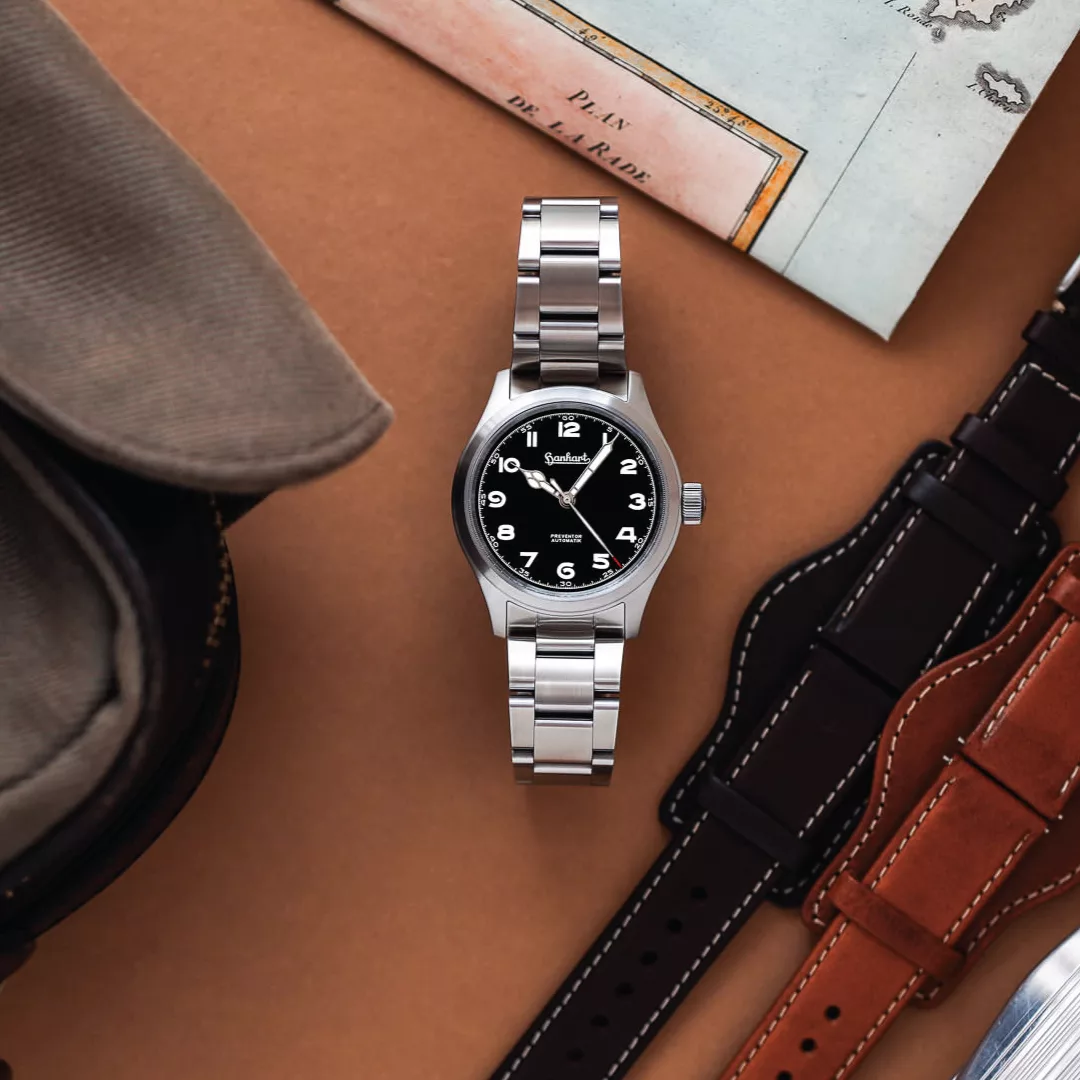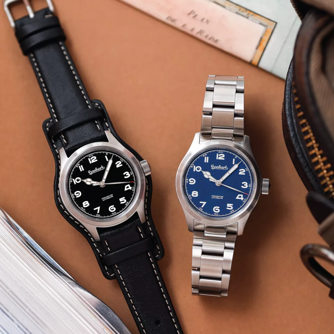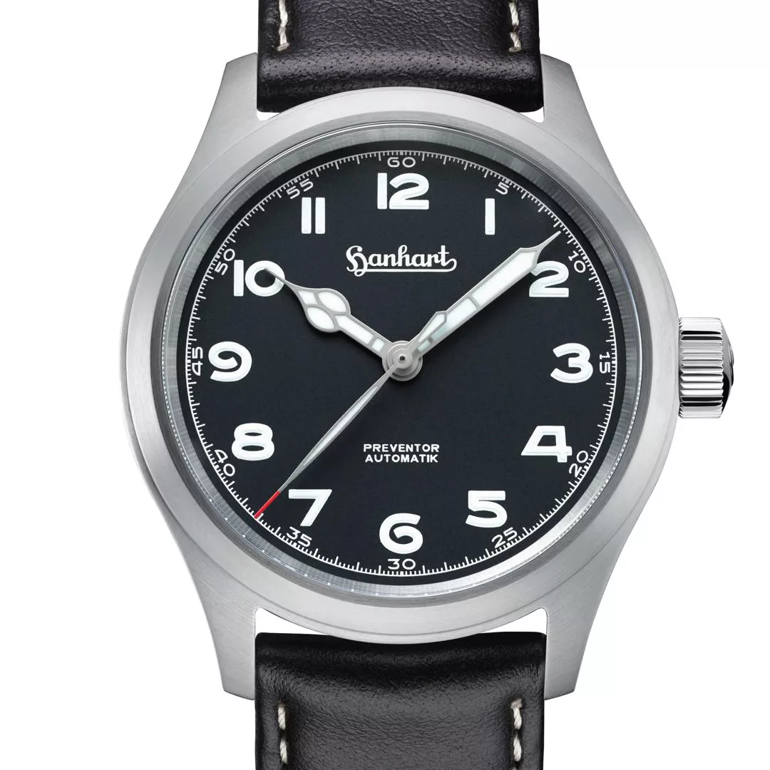 Outstanding comfort: Various strap options are available for the Preventor HD12 to deliver individual style and comfort depending on your needs and preferences. Go classic with a leather band on pin buckle, or for those who value easy care, Hanhart also offers a robust steel bracelet, which is coated with a transparent hard material layer (PVD) and has a surface hardness of up to 1000 HV.