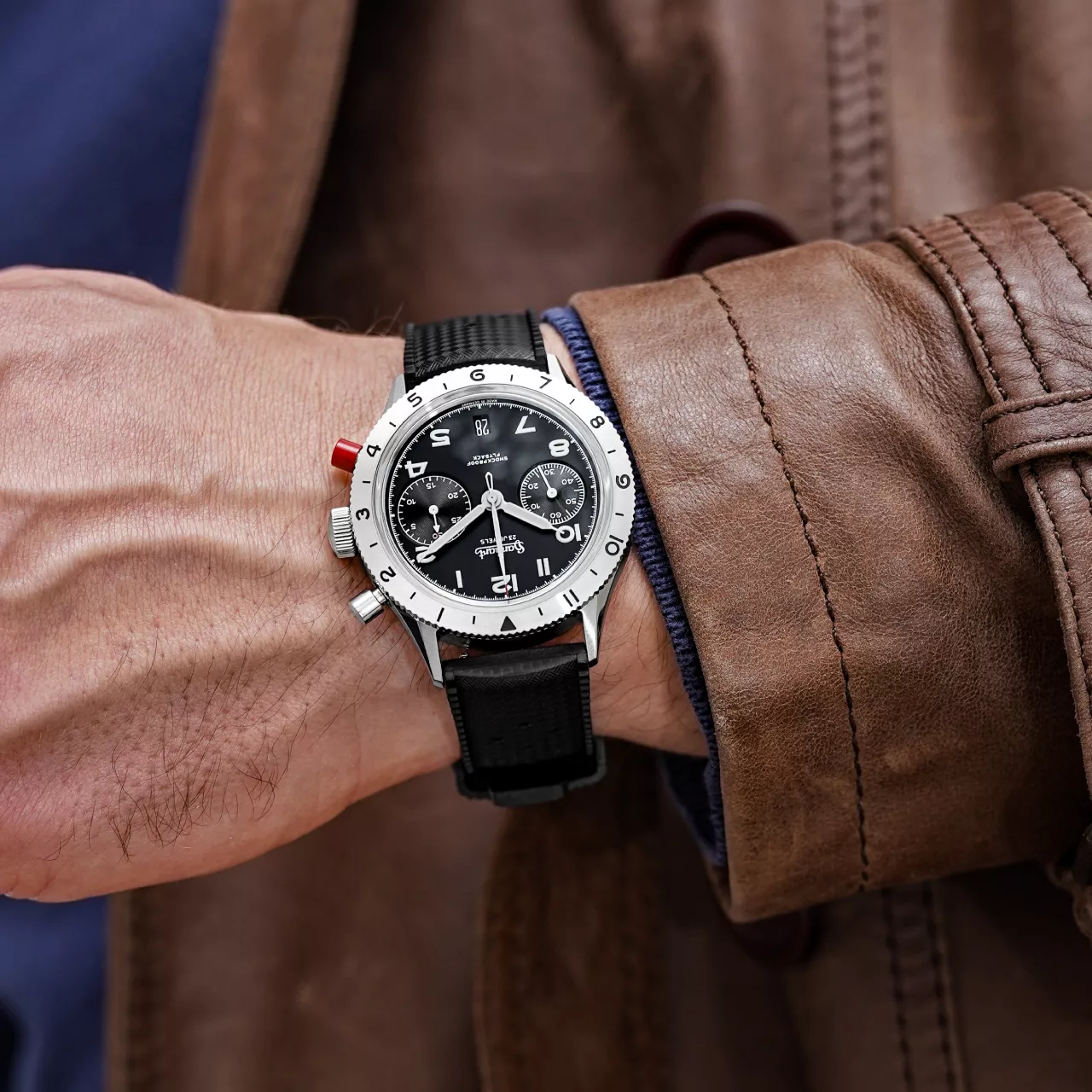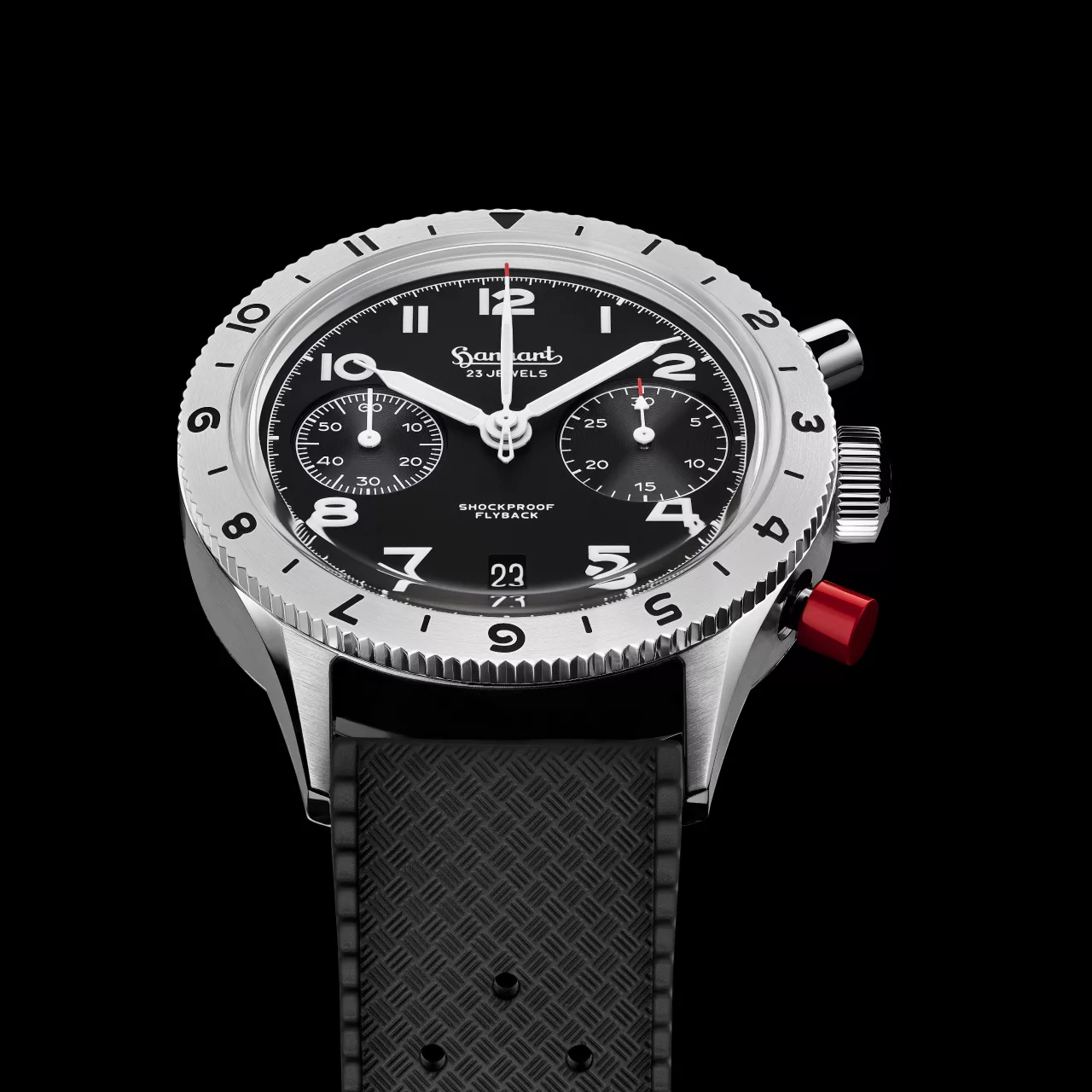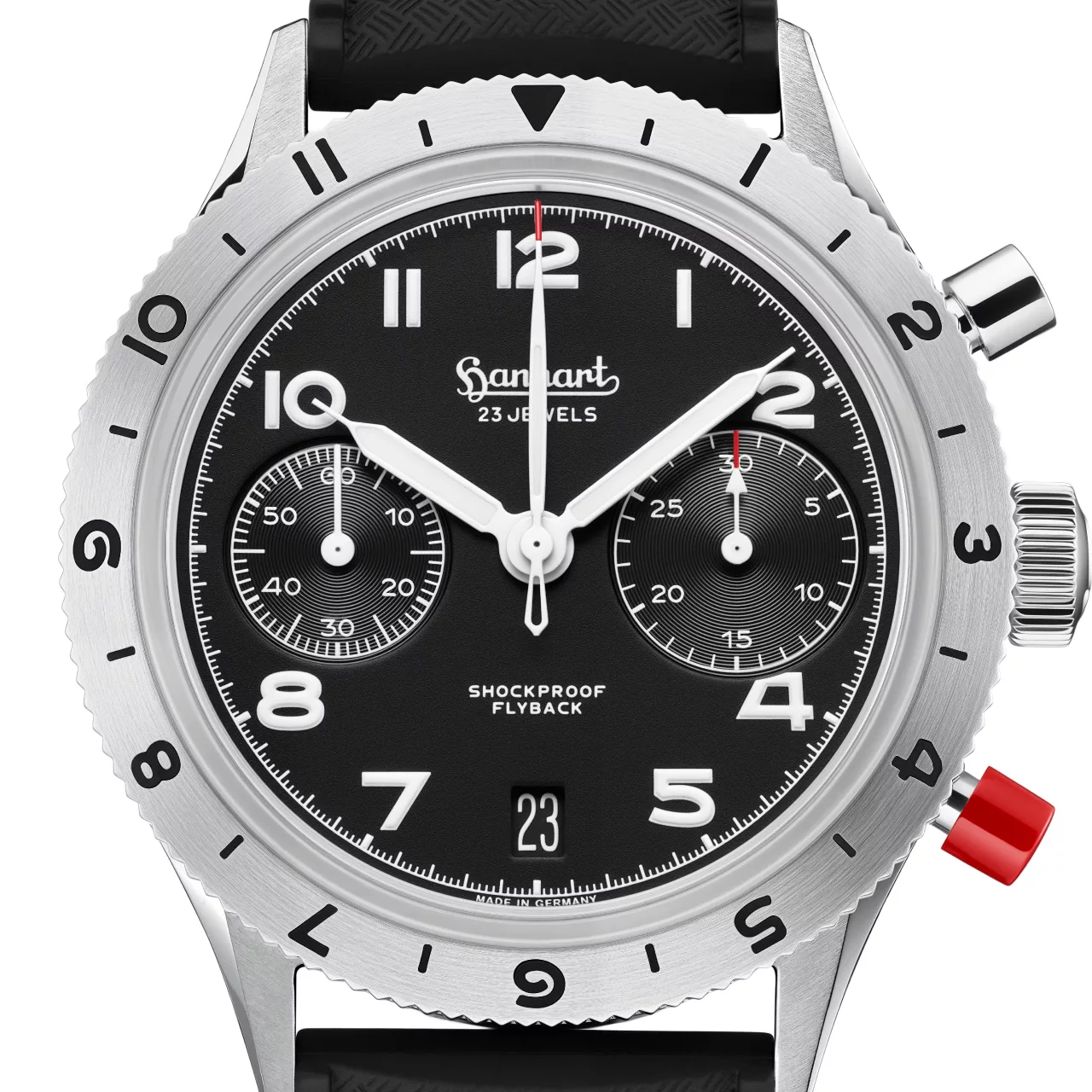 The Hanhart Red Lion Mk II is the latest chapter in the ongoing story of one of Germany’s most recognisable pilot chronographs. Drawing inspiration from the legendary 417 ES, yet designed with a more technical, forward leaning character, the Red Lion Mk II reflects the fusion of historic military purpose with modern usability. It is the result of a close collaboration between Hanhart and TGV of Gentry Labs, bringing together traditional chronograph architecture and contemporary functionality in a way that feels cohesive, refined and purposeful.