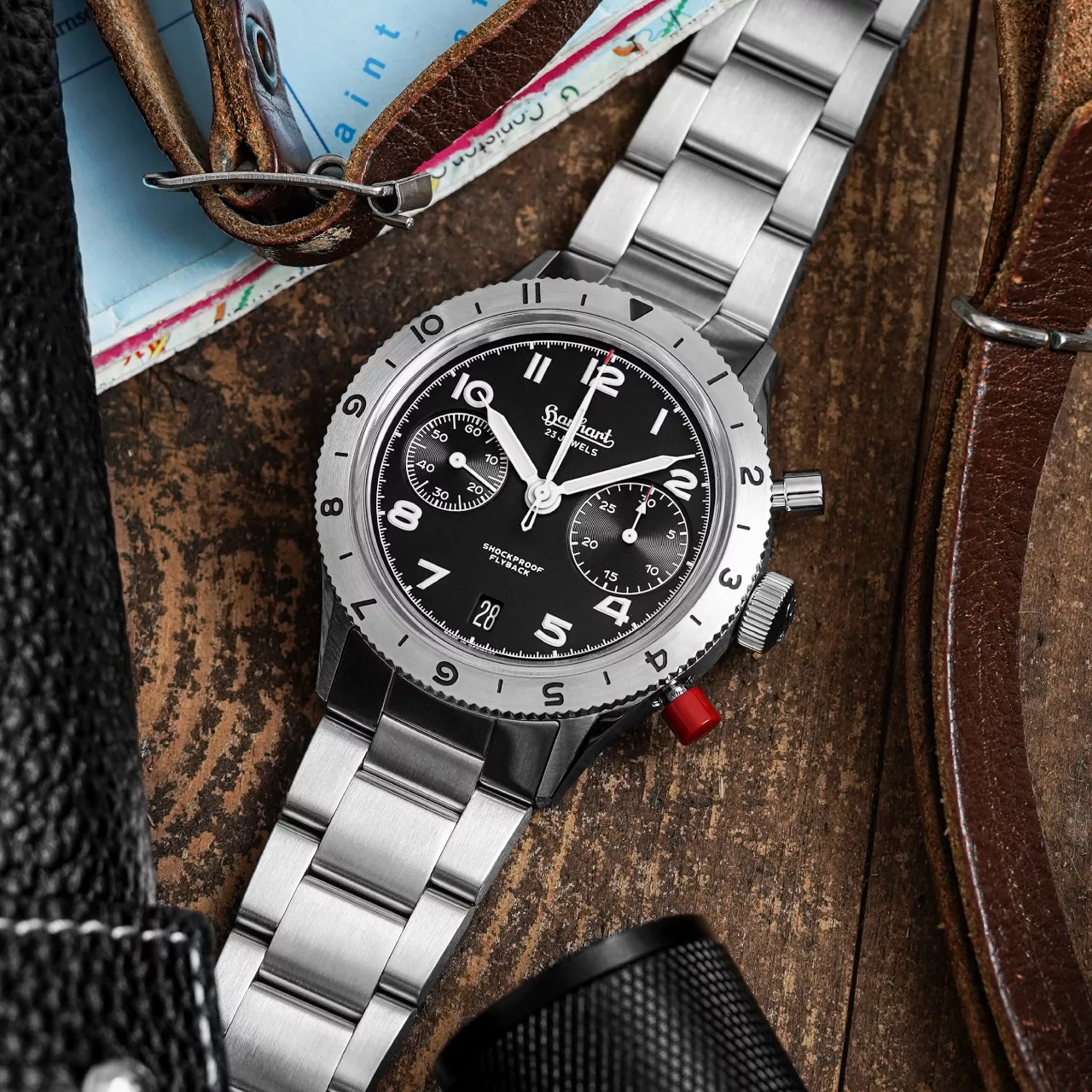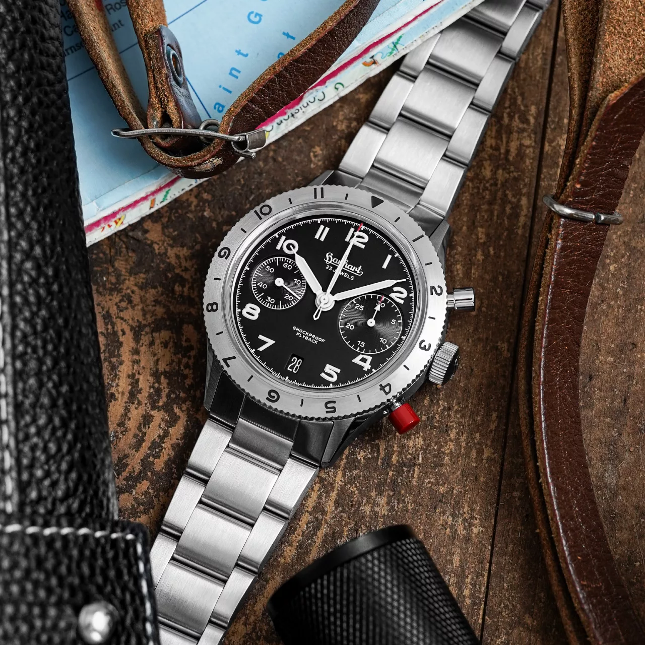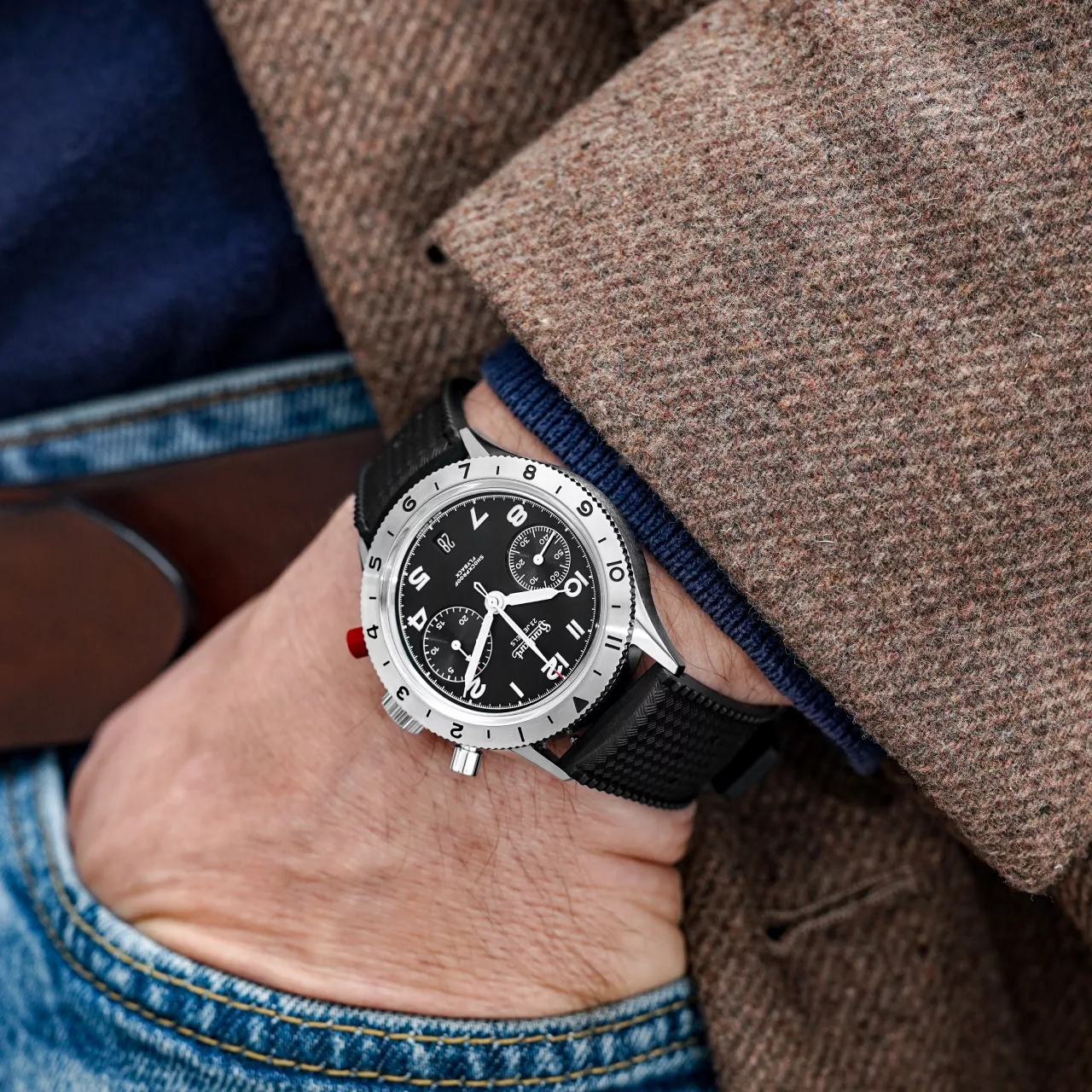 The Hanhart Red Lion Mk II is the latest chapter in the ongoing story of one of Germany’s most recognisable pilot chronographs. Drawing inspiration from the legendary 417 ES, yet designed with a more technical, forward leaning character, the Red Lion Mk II reflects the fusion of historic military purpose with modern usability. It is the result of a close collaboration between Hanhart and TGV of Gentry Labs, bringing together traditional chronograph architecture and contemporary functionality in a way that feels cohesive, refined and purposeful.