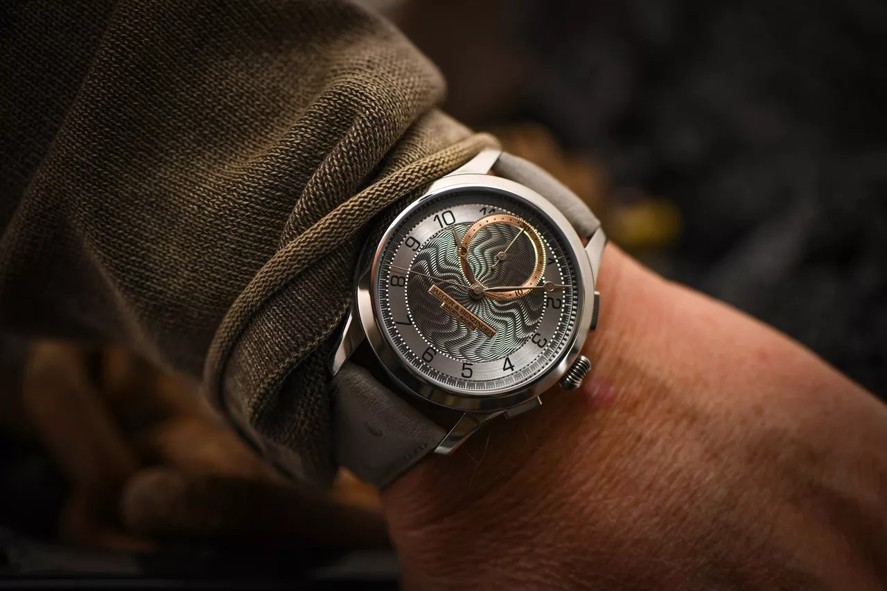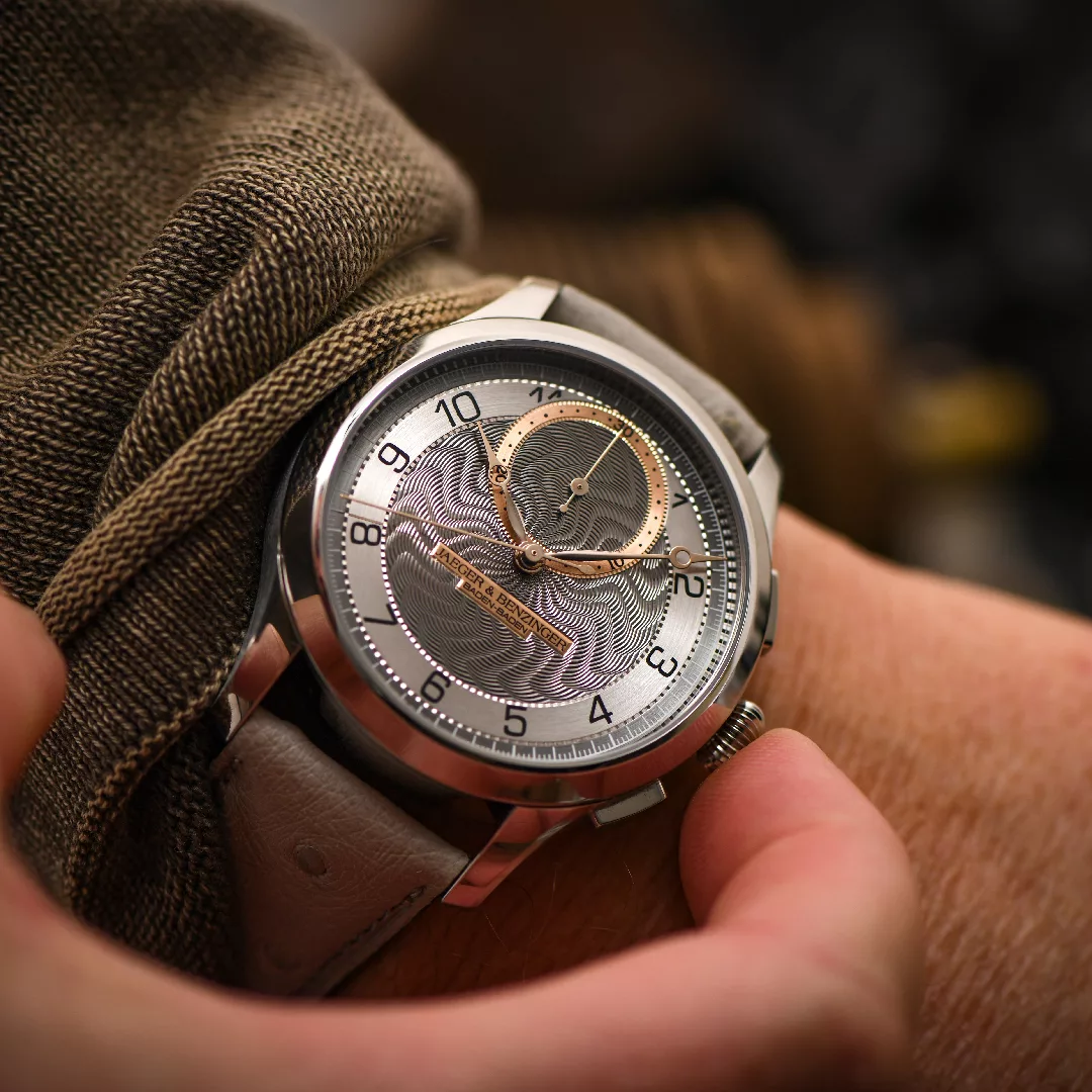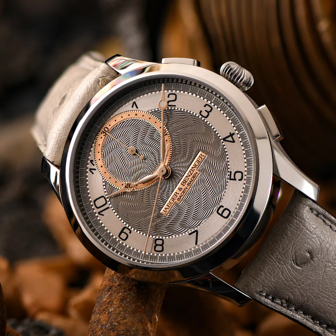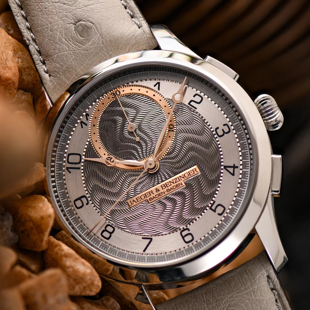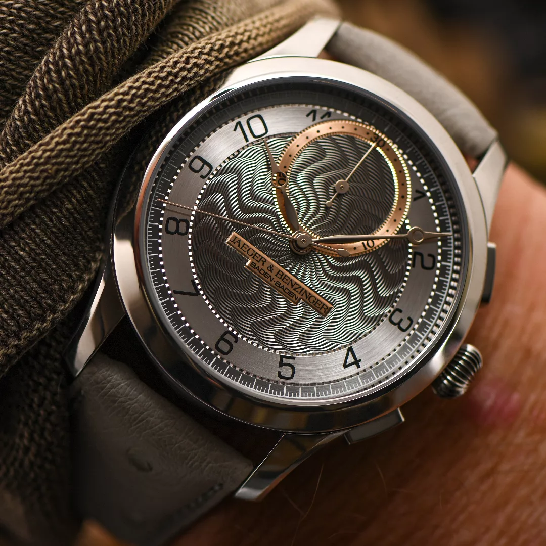The Jaeger & Benzinger Edition 7 Chrono Moiré represents the latest evolution in a collection defined by traditional craftsmanship and understated complexity. At first glance, the watch appears calm and classical, yet closer inspection reveals a carefully integrated chronograph that remains faithful to the aesthetic language established by Jochen Benzinger and Kay Jaeger. This restrained approach allows the chronograph to feel like a natural extension of the design rather than a visual interruption.