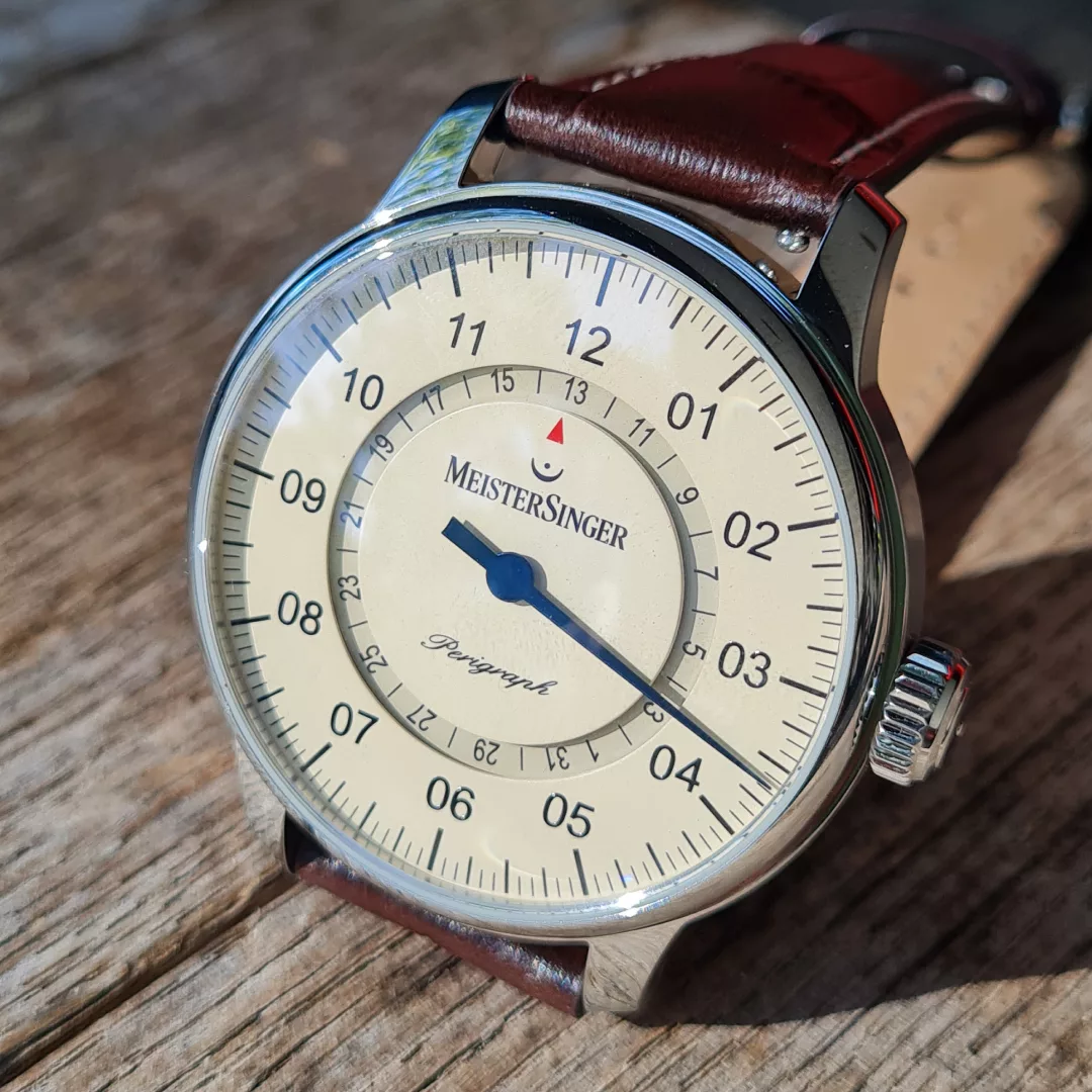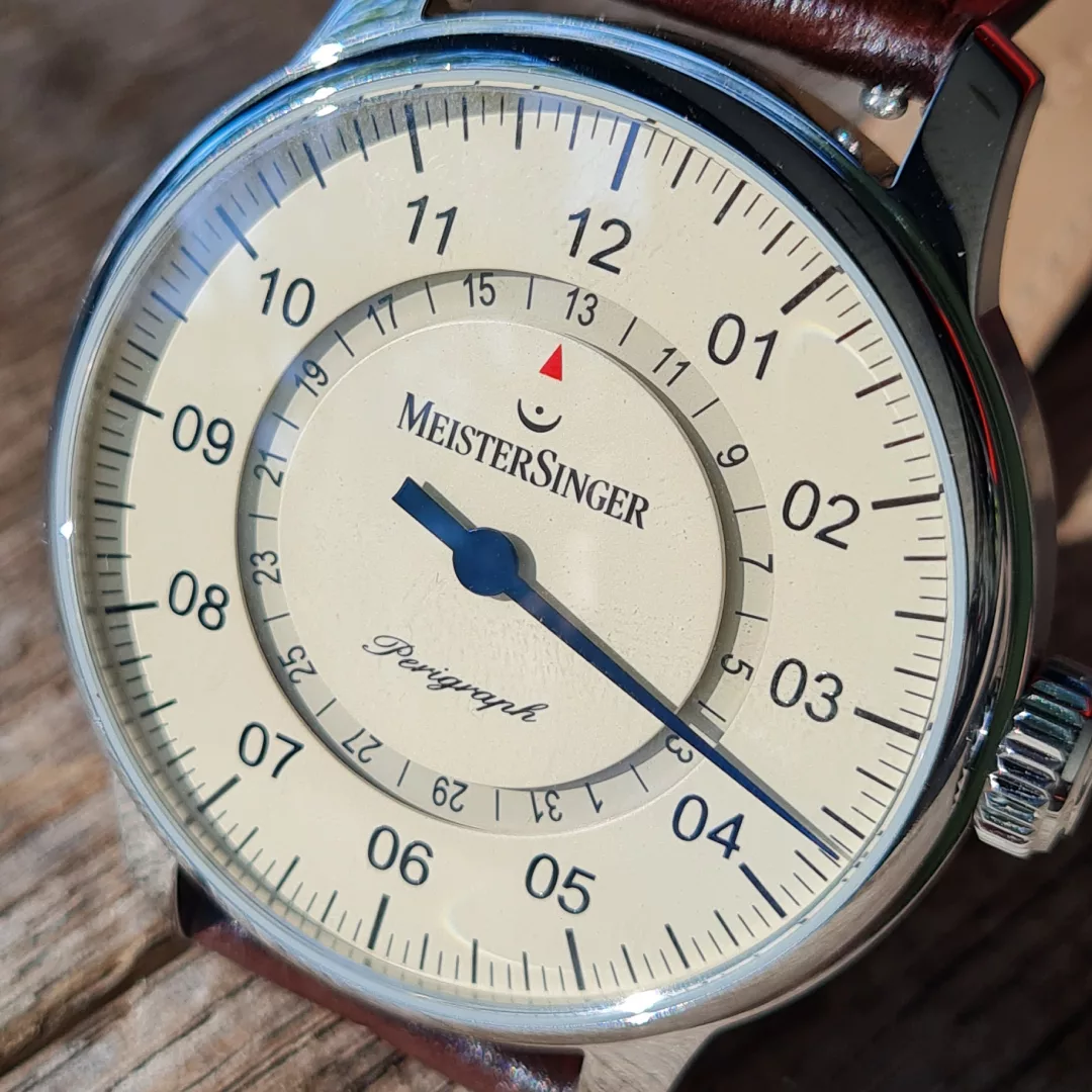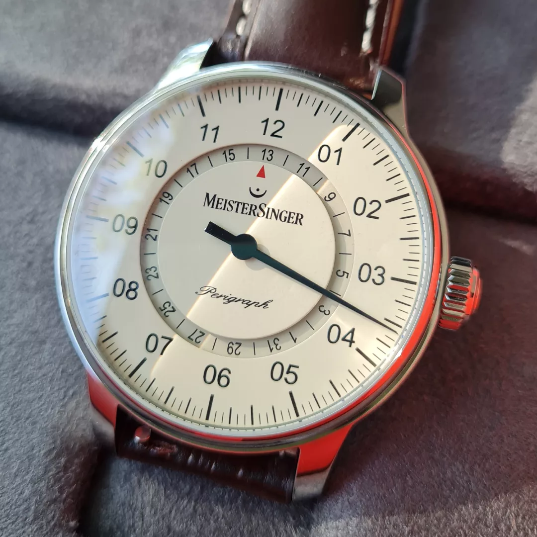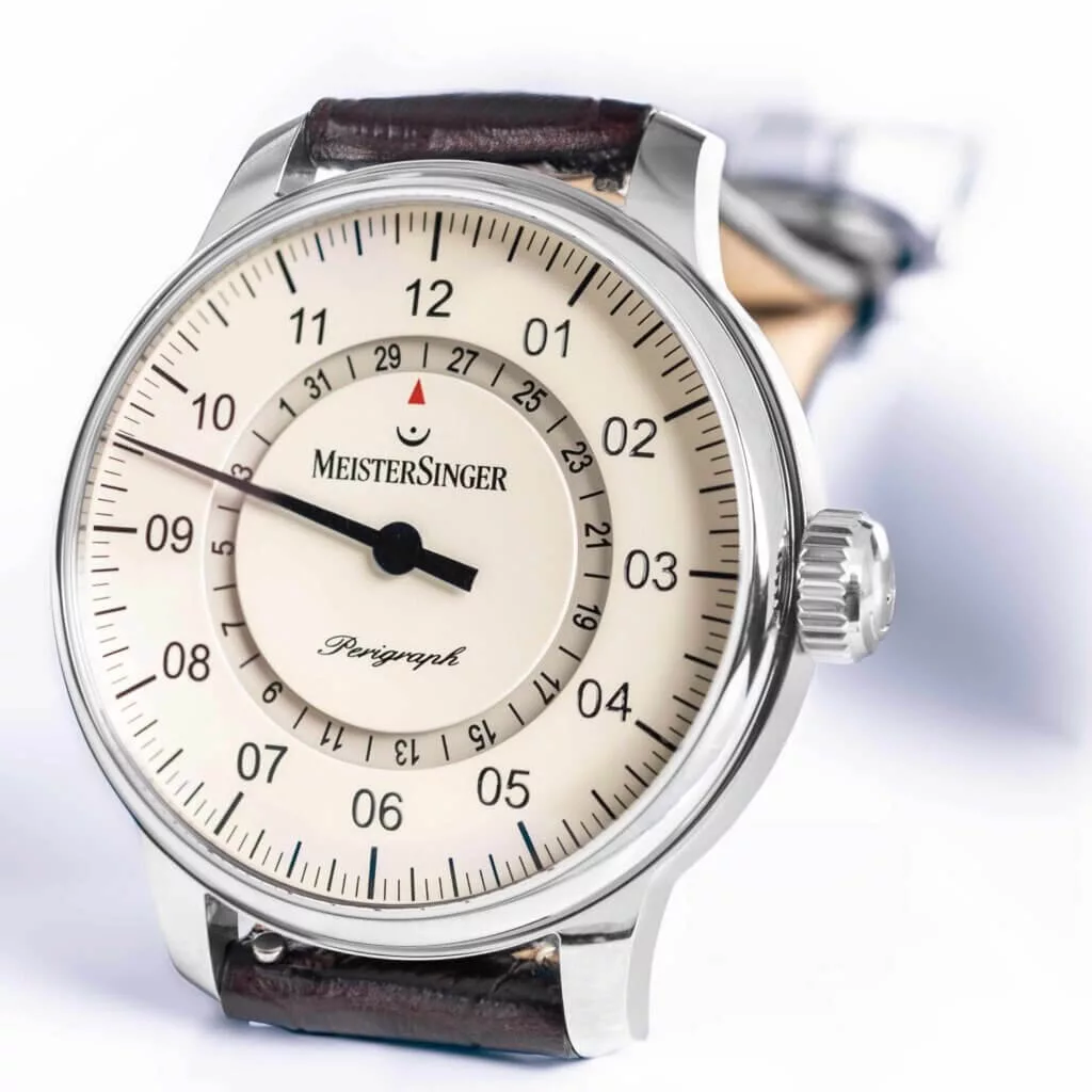The Perigraph has long been considered a genuine classic of the MeisterSinger collection and shows no signs of fatigue, even after 20 years. The Perigraph’s unusual way of displaying the date earned it the prestigious Red Dot Design Award.