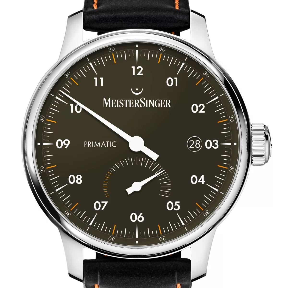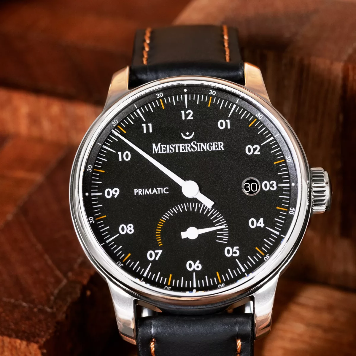With a diameter of 41.5 mm, the Primatic presents a case size that is new to MeisterSinger. The stainless steel case is water-resistant up to 5 bar and fitted with a domed sapphire glass over the dial. The movement can be easily viewed through the sixfold screwed glass exhibition back as it performs its high-precision task.