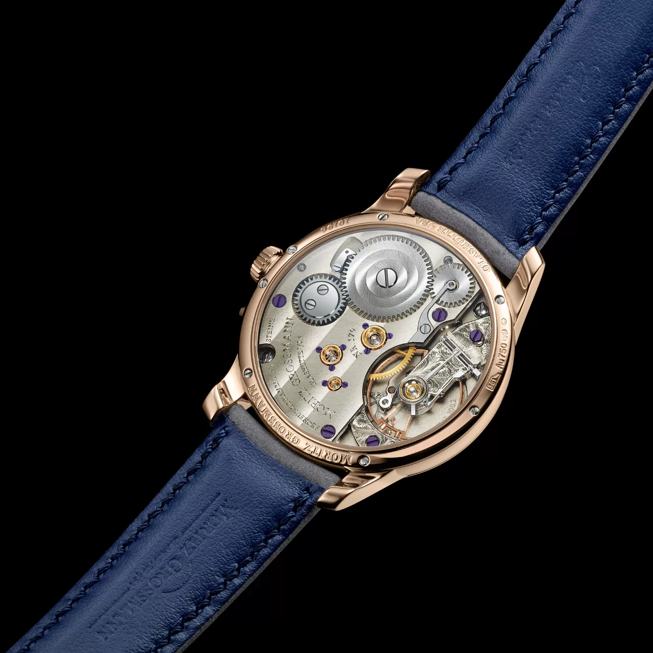 The linear power reserve display itself is a highlight of the piece. A coloured bar gradually reveals itself as the energy reserve diminishes, transforming a functional complication into a visually captivating detail. It demonstrates the balance of form and utility that defines the ethos of Moritz Grossmann.
