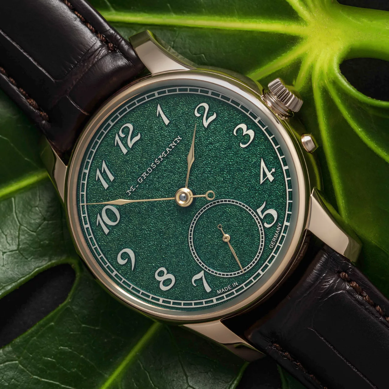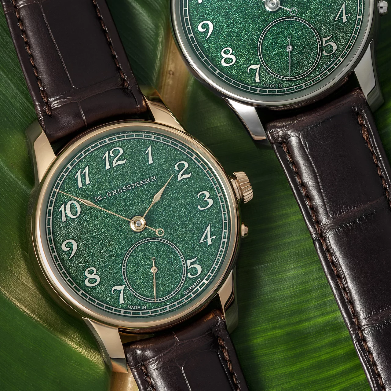 A remarkable blend of traditional artistry and contemporary elegance, the Moritz Grossmann Tremblage Green – Rose Gold stands as a testament to the manufactory’s dedication to craftsmanship. This limited-edition timepiece pays homage to the ancient art of tremblage engraving, a technique that is nearly lost to time. With only eight pieces available in this rose gold configuration, it is a refined example of rarity and mechanical mastery.