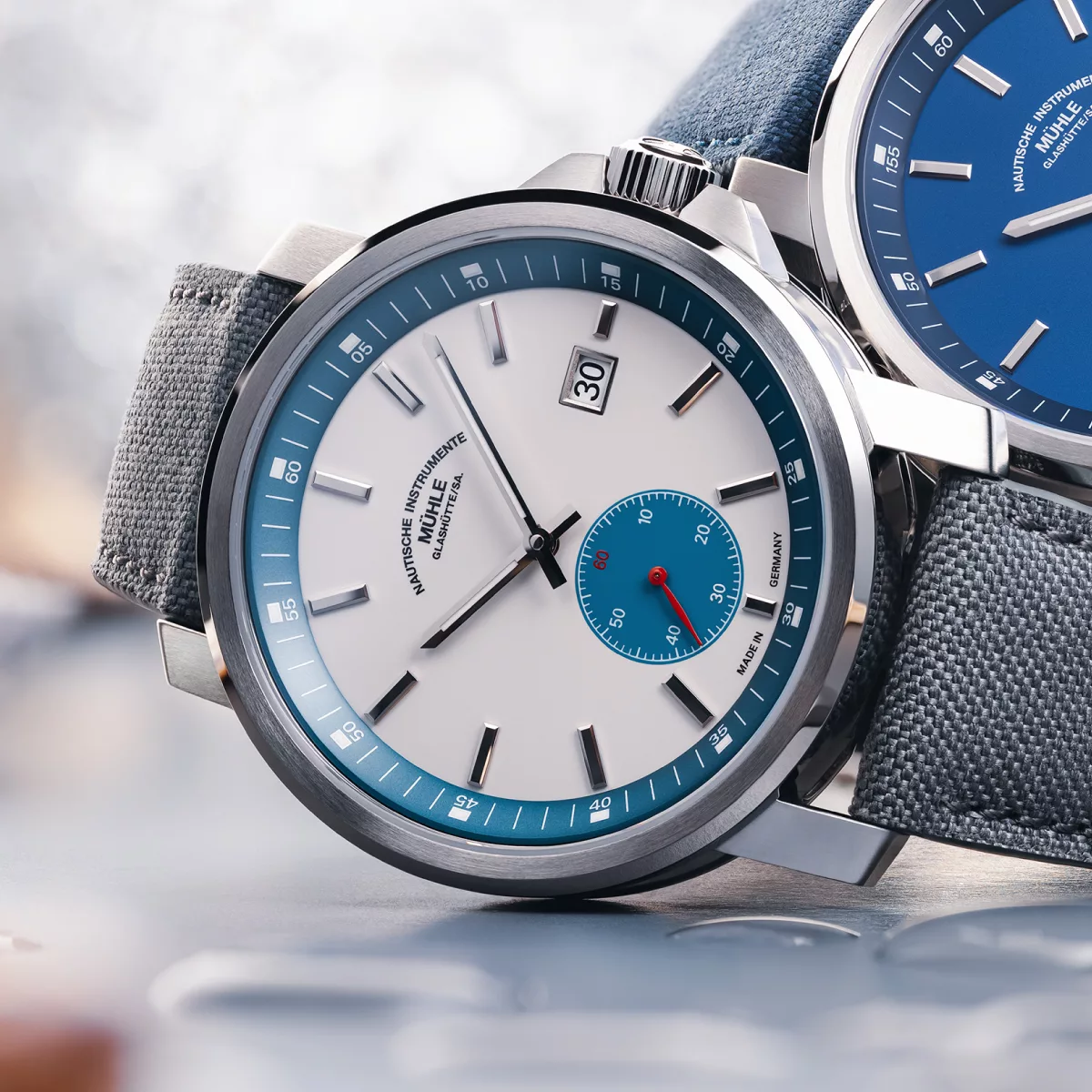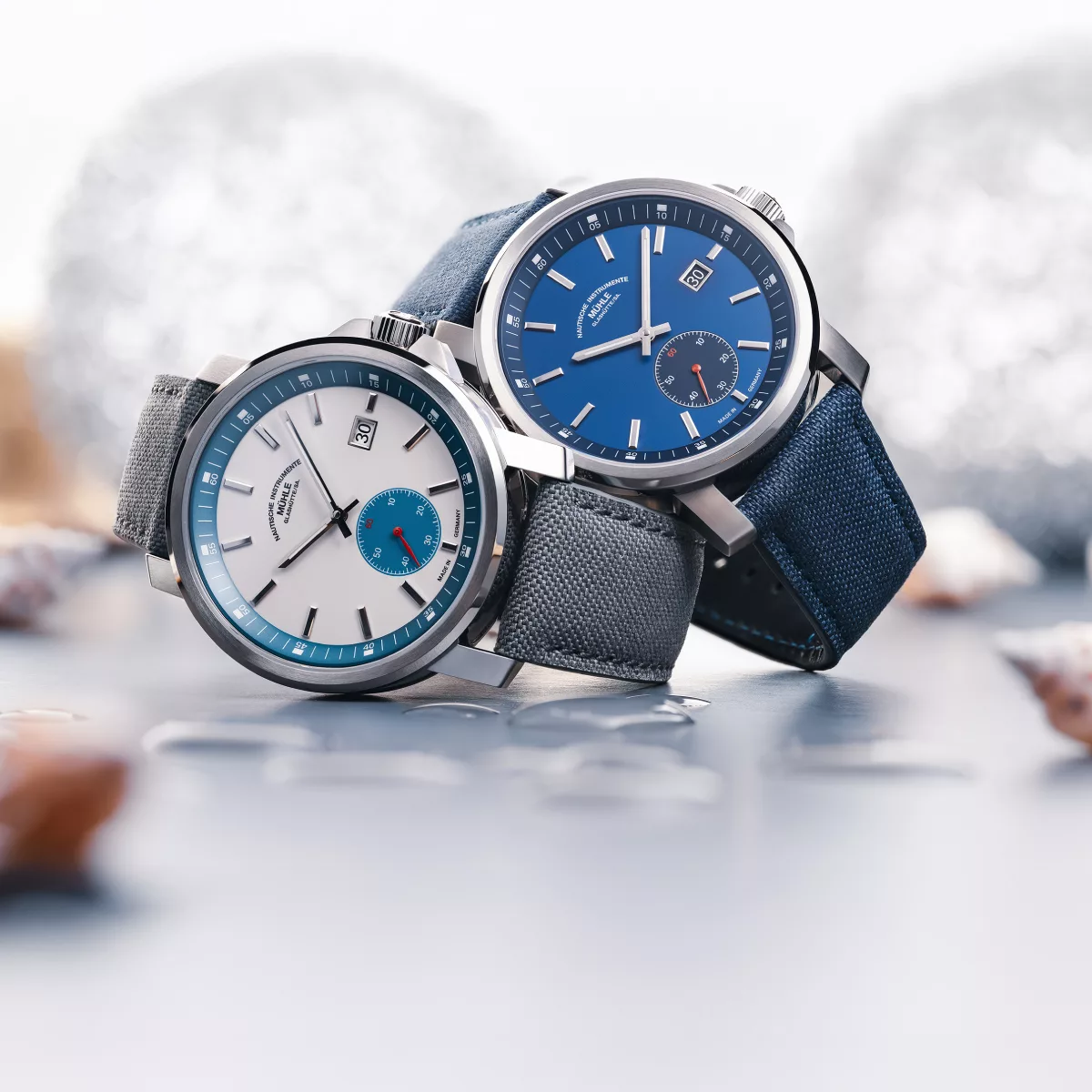 The 42.4-millimetre-large 29er Big now features a permanent small second complication, first introduced in Edition 1994 during Mühle’s anniversary year, 2024. Watch aficionados will appreciate two new models: one with a stone-white dial reminiscent of chalky coastal cliffs with a splash of petrol blue in the flange and small second display, and another with a deep blue dial paired with an even darker blue accent.