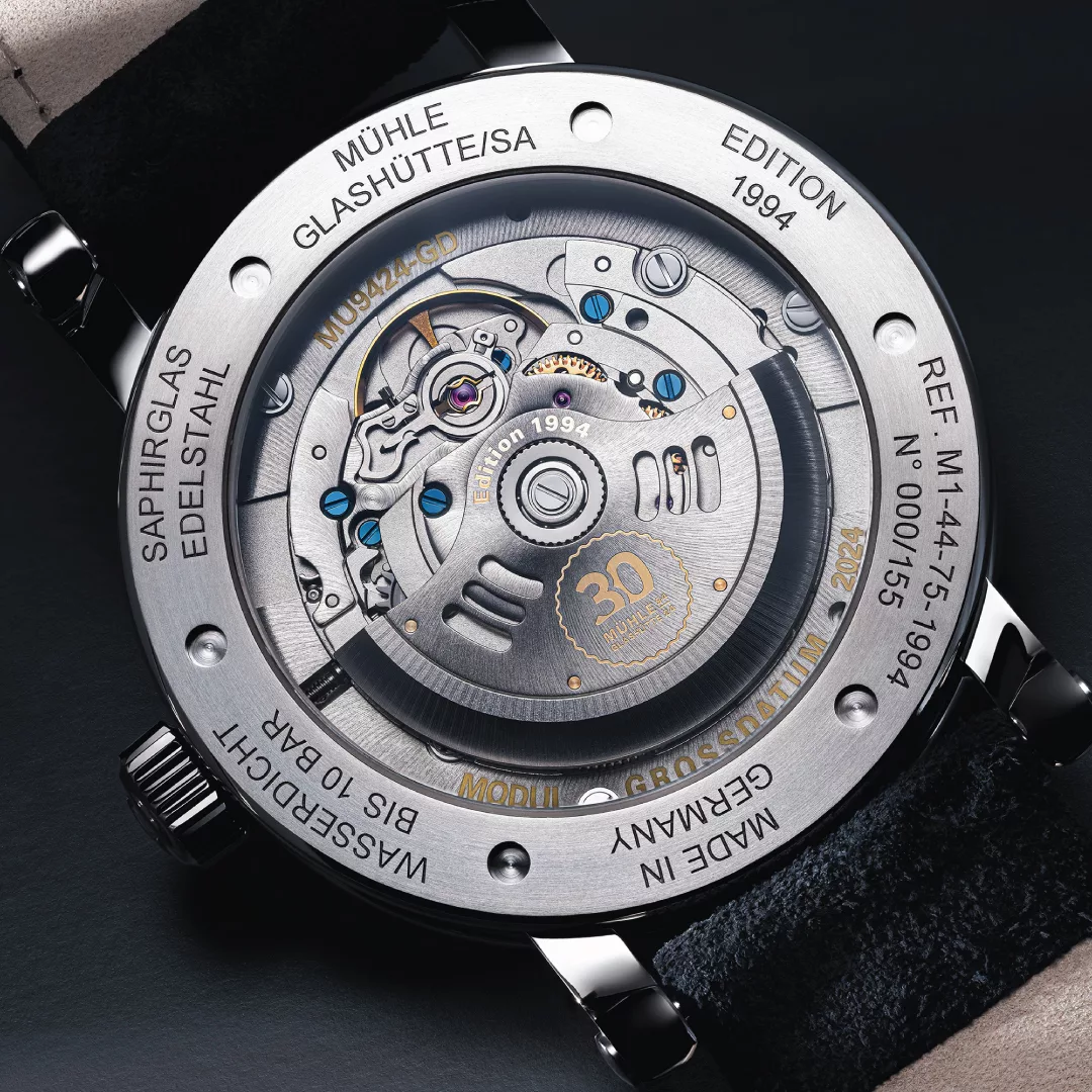 The Edition 1994 collection celebrates 30 years of the family company Mühle-Glashütte in its current form. It features selected Mühle watches that will be released as special highlights throughout the anniversary year. The celebrations were kicked off by the launch of the 29er Big BRONZE Edition 1994 in January 2024, followed by the S.A.R. Rescue-Timer Edition 1994 in April, the month in which the modern-day Mühle-Glashütte was founded. The Teutonia IV Big Date Edition 1994, which features the newly developed “MU9424-GD” modular movement, is the fourth model to join the exclusive range of anniversary editions.