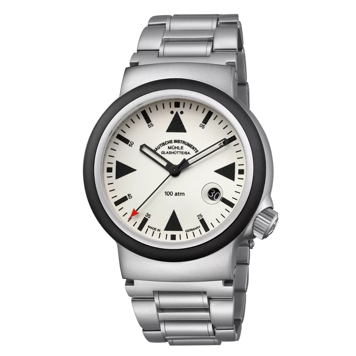 When it comes to inner values, the watch contains a reliable automatic movement for precise time measurements. The SW 200-1 Muehle version movement is not only equipped with the efficient Muehle rotor but also features the particularly shockproof woodpecker neck regulation and is regulated in six positions. For accuracy, it is set to ensure values of between 0 and a maximum of +8 seconds per day. This precision target forms the heart of Muehle’s in-house quality standards for maritime instruments and timepieces which comply with the German chronometer standard.
