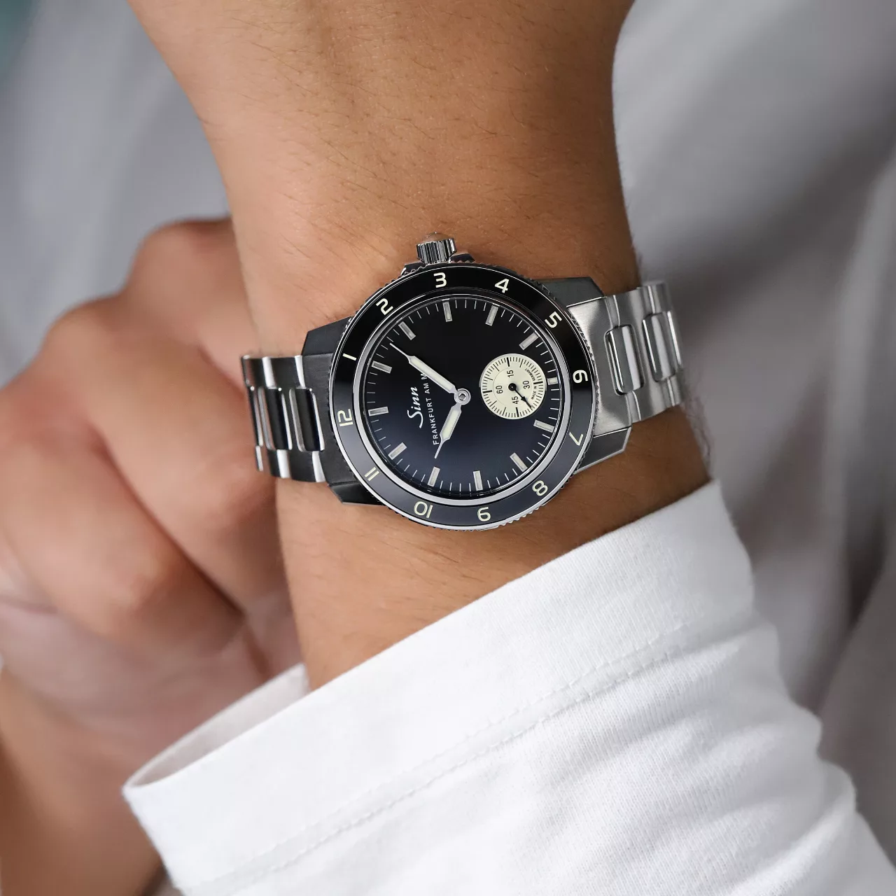 The 104 Classic 12 combines the best of Sinn’s watch design and also offers a second time zone feature via the ceramic bezel. The clean lines and tidy design of the 104 Classic 12 make for a well-formed, functional and comfortable wear.