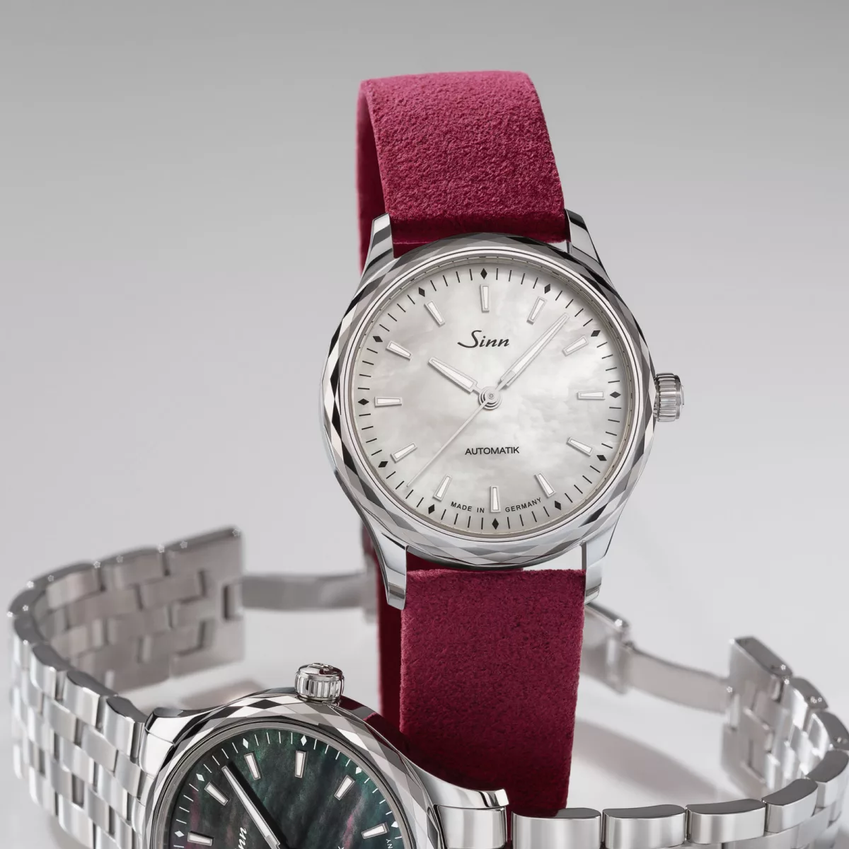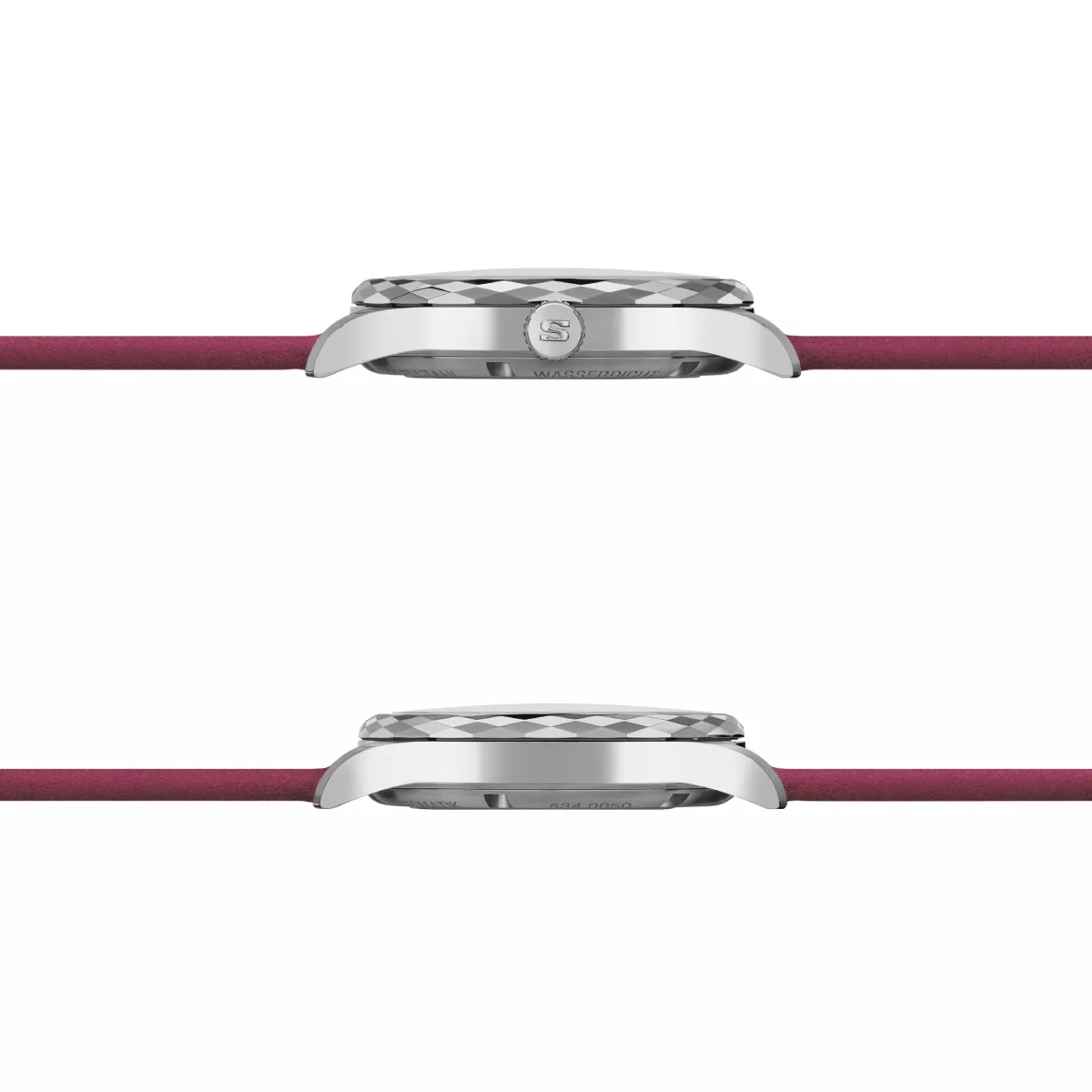 With a diameter of 34 mm, the 534 Mother‑of‑Pearl W offers exceptional comfort, gracefully adorning any wrist. The model is versatile with a choice of straps: a fine-link stainless steel bracelet, a delicate calfskin leather strap, or an Alcantara strap available in sand-coloured or berry red tones. Both Alcantara straps feature a quick-adjustment system for adaptability to any occasion or style.