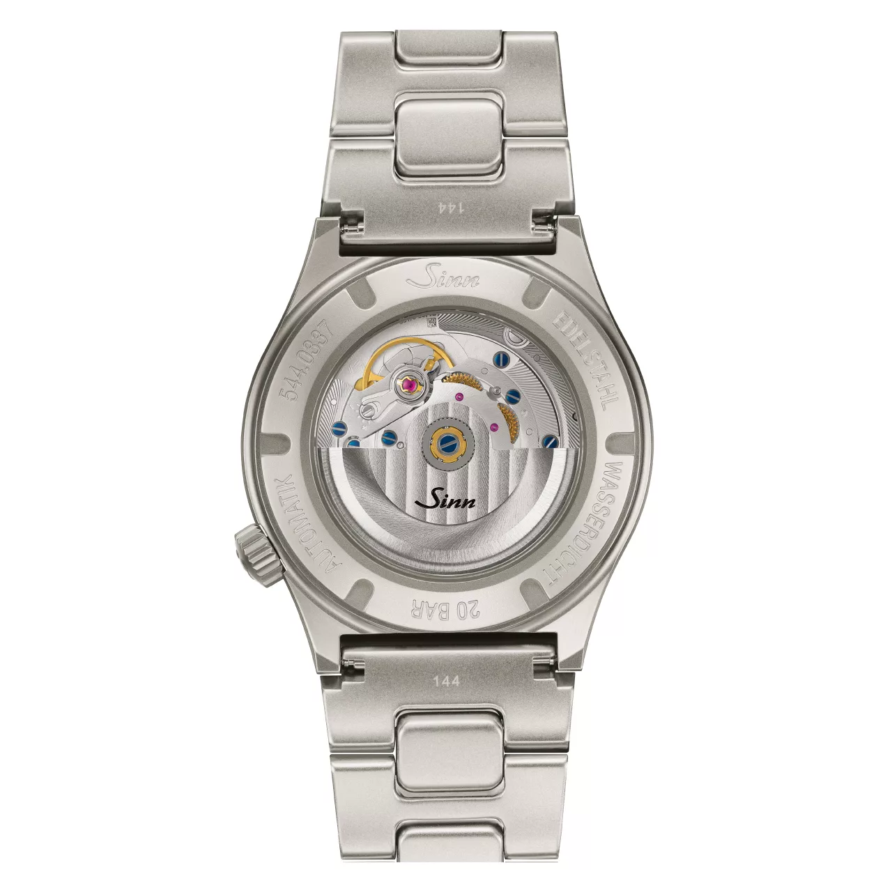 The 38.5 mm bead-blasted stainless-steel case gives the 544 RS a contemporary presence that feels compact, practical, and highly wearable. Its proportions are especially well considered, offering a versatile fit that suits a wide range of wrists while preserving the technical, instrument-like character for which Sinn is known. The matte surface treatment reinforces the watch’s understated confidence, while sapphire crystal on both the front and back adds clarity, durability, and a sense of depth to the overall design.