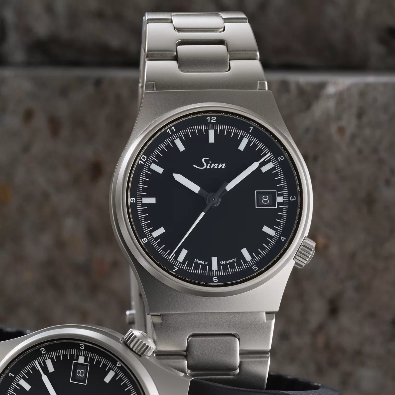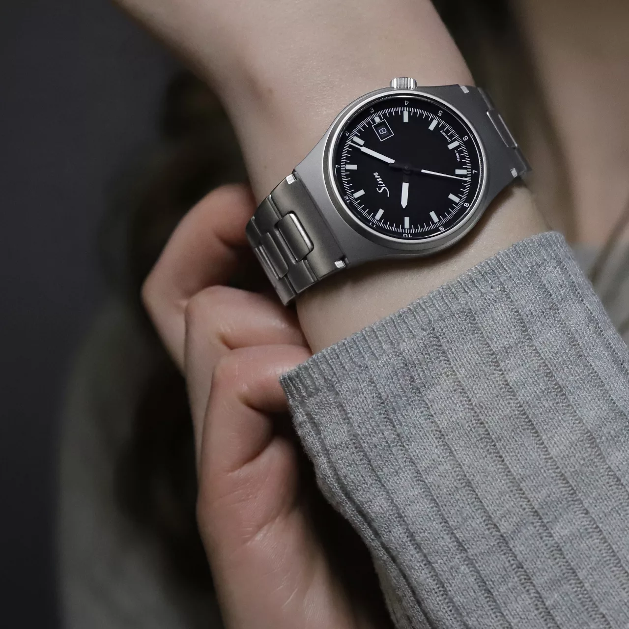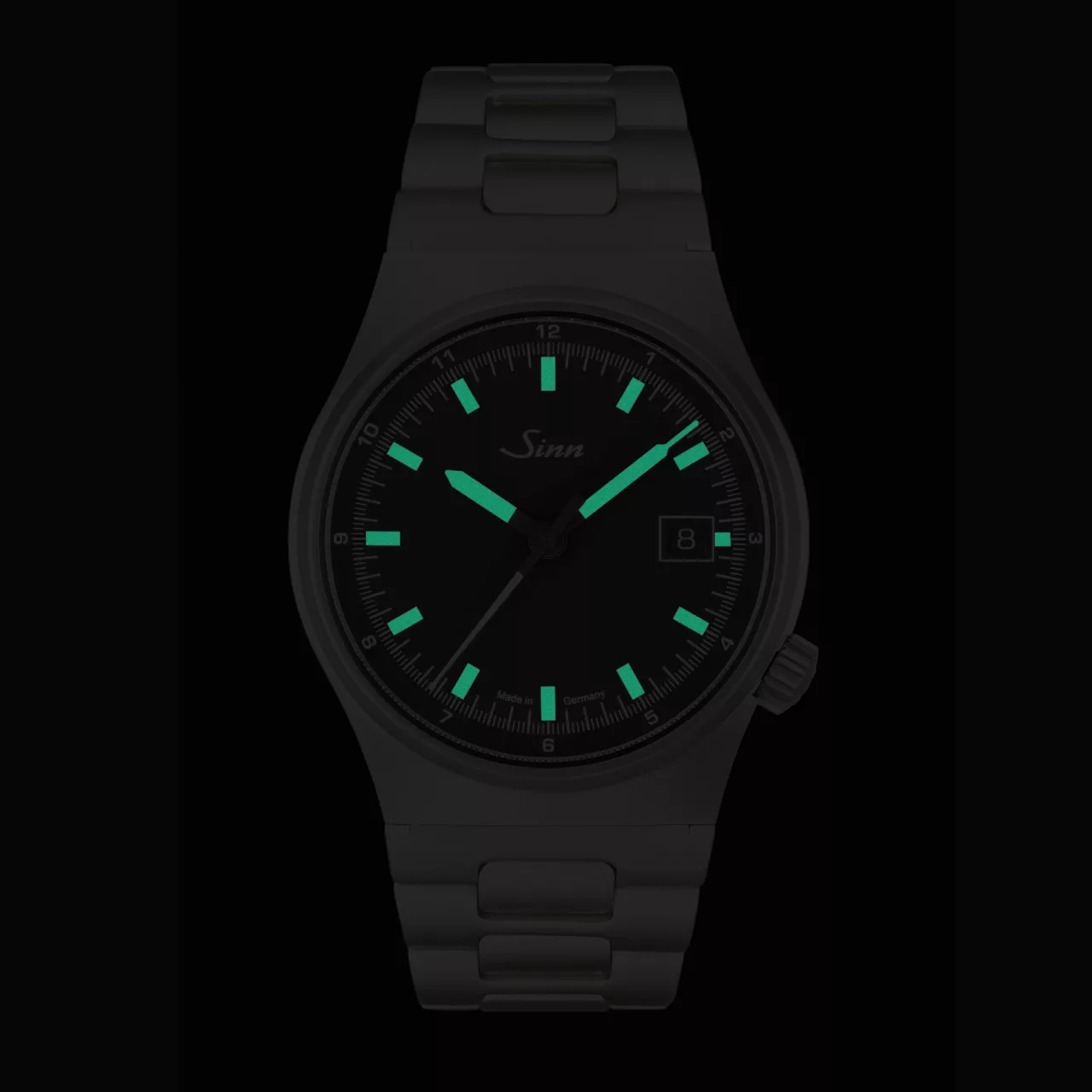 Legibility remains central to the watch’s identity. The matte black dial provides a strong visual foundation, while the hour and minute hands are enhanced with manually applied hybrid-ceramic luminous elements. By integrating luminous pigments directly into the ceramic component, Sinn achieves a particularly high concentration of luminous material. The result is intense glow performance and crisp readability in low light, in keeping with the brand’s long-standing commitment to functional precision.