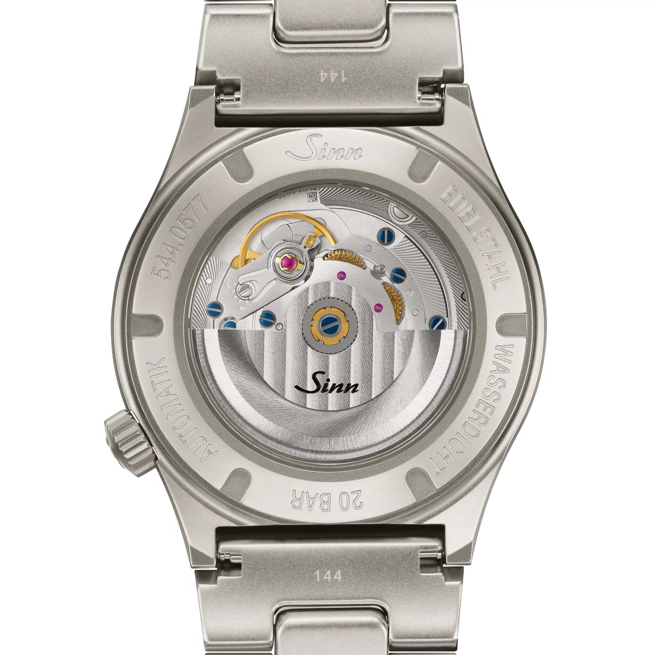 Its 38.5 mm stainless-steel case is bead-blasted for a finely textured finish that reinforces the watch’s technical, contemporary nature. The proportions are especially well judged, offering a compact and versatile presence on the wrist while maintaining the solid feel expected of a Sinn instrument watch. With sapphire crystal protecting both the dial side and the transparent case back, the 544 balances robustness with refinement in a way that suits both daily wear and more considered appreciation.