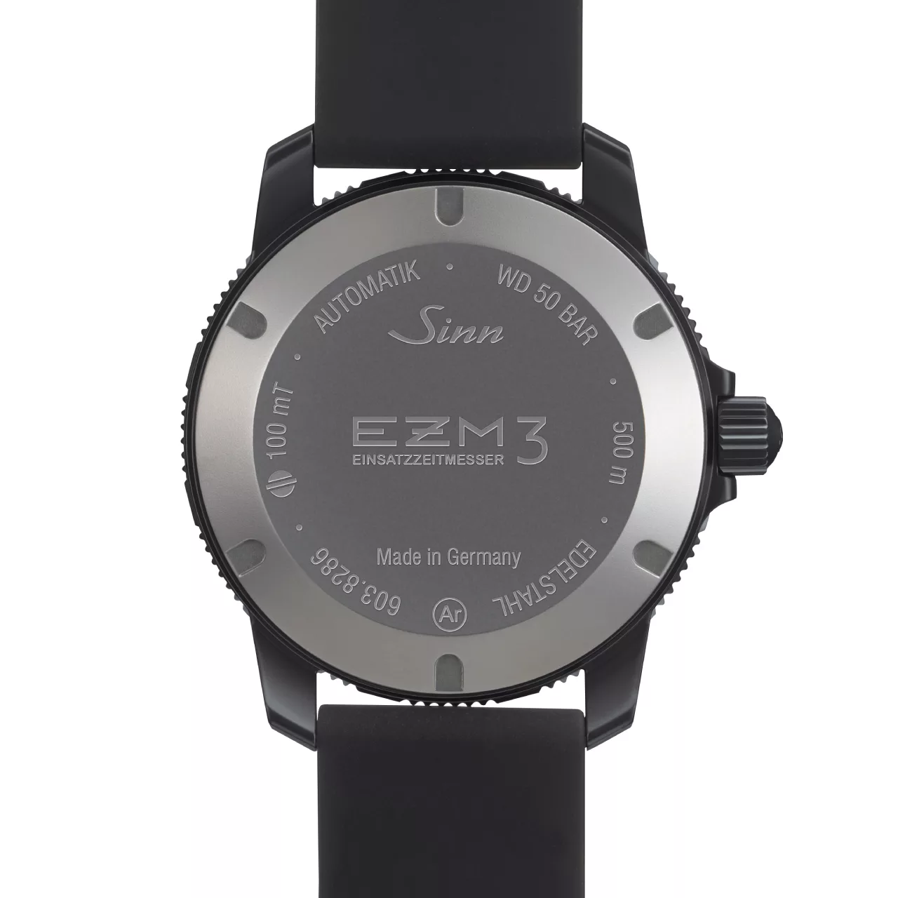 Certified to European diving equipment standards and tested by an independent institute, the EZM 3 S guarantees water resistance up to 500 metres. It also withstands extreme temperatures from -45°C to +80°C, is protected against magnetic fields up to 100mT, and incorporates Sinn’s Ar-Dehumidifying Technology for long-term reliability and fog-free performance.