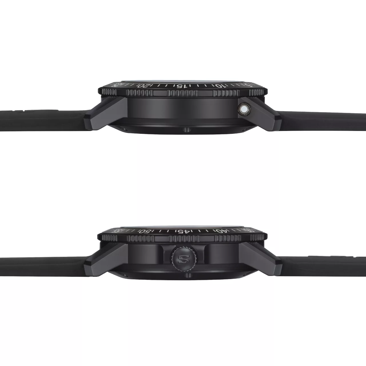 Its striking profile comes from the black hard coating on a TEGIMENT Technology basis, combined with a bead-blasted stainless steel case. This not only gives the watch its bold, technical appearance but also enhances the contrast and legibility of the bezel markings. The crown is placed at 9 o’clock to prevent pressure against the back of the hand, adding a practical ergonomic touch for professional divers.