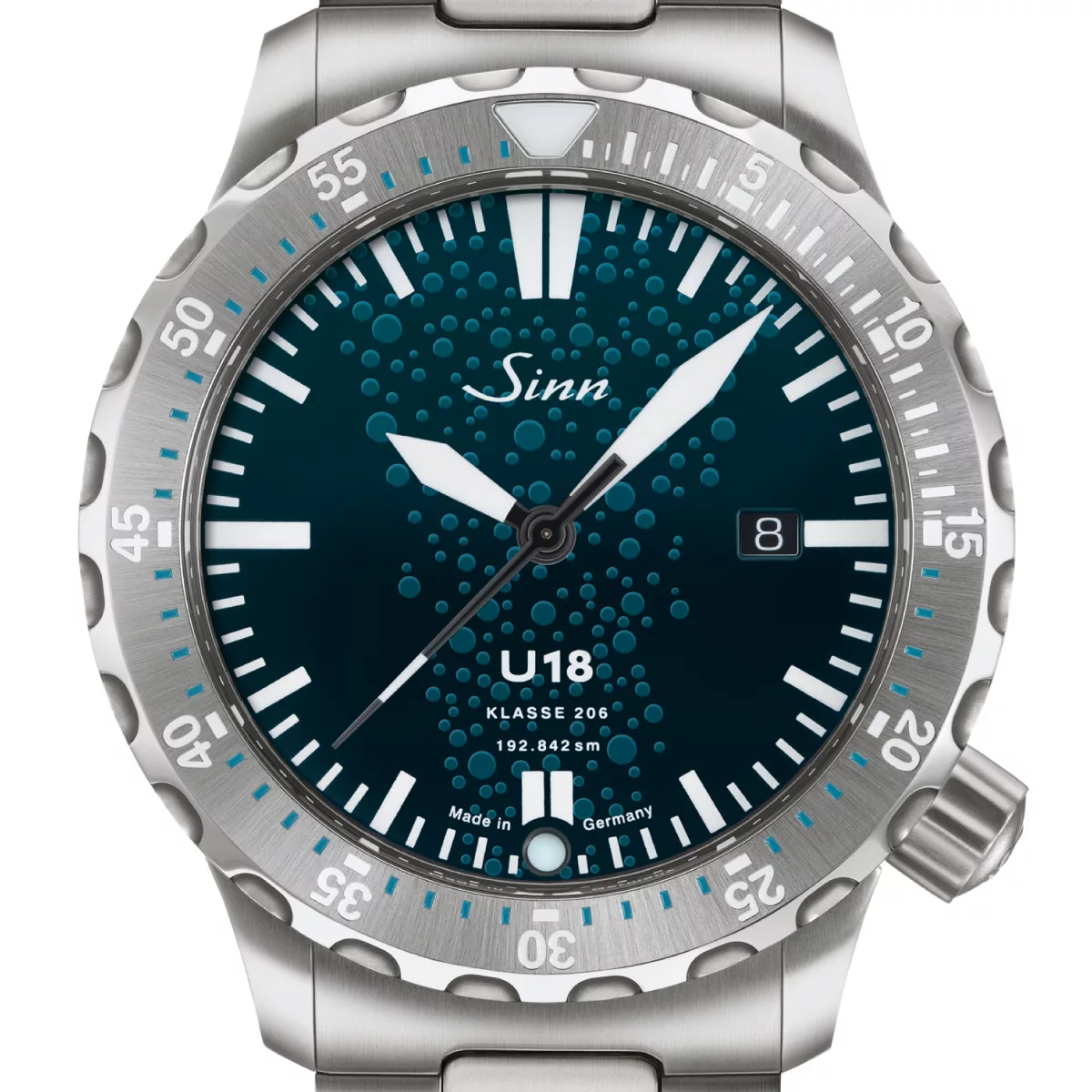 Commissioned in 1973, submarine U 18 achieved an impressive record: 192,842 nautical miles, meticulously documented by a former crew member. This astonishing figure equals about nine journeys around the globe! After its decommissioning, Sinn Spezialuhren acquired material from the submarine’s outer hull, using it to craft the heart of a unique, limited-edition diving watch. Limited to 1,000 pieces, the watch case is made from high-strength, seawater-resistant steel sourced directly from the U 18 submarine. This makes the submarine not only the namesake of model U18 but also an exclusive material source—and a timeless link to an unforgettable era in German submarine history.
