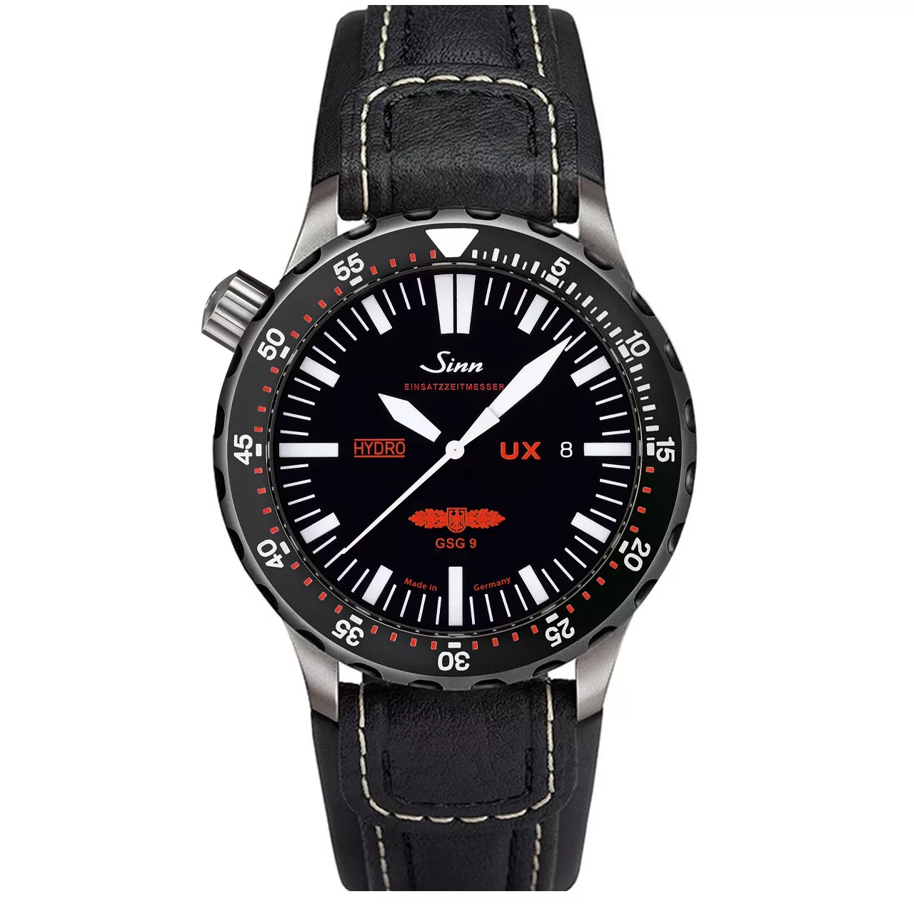The UX is water proof to all depths! The watch itself is made from special U-boat steel and is full with features and special Sinn technologies including anti reflection, Sinn’s special oil filling, steel tegimentation and temperature resistance from -20 to +60 degrees C. It has been developed for serious sports people and professional divers who require reliable, state-of-the-art instruments at their side.